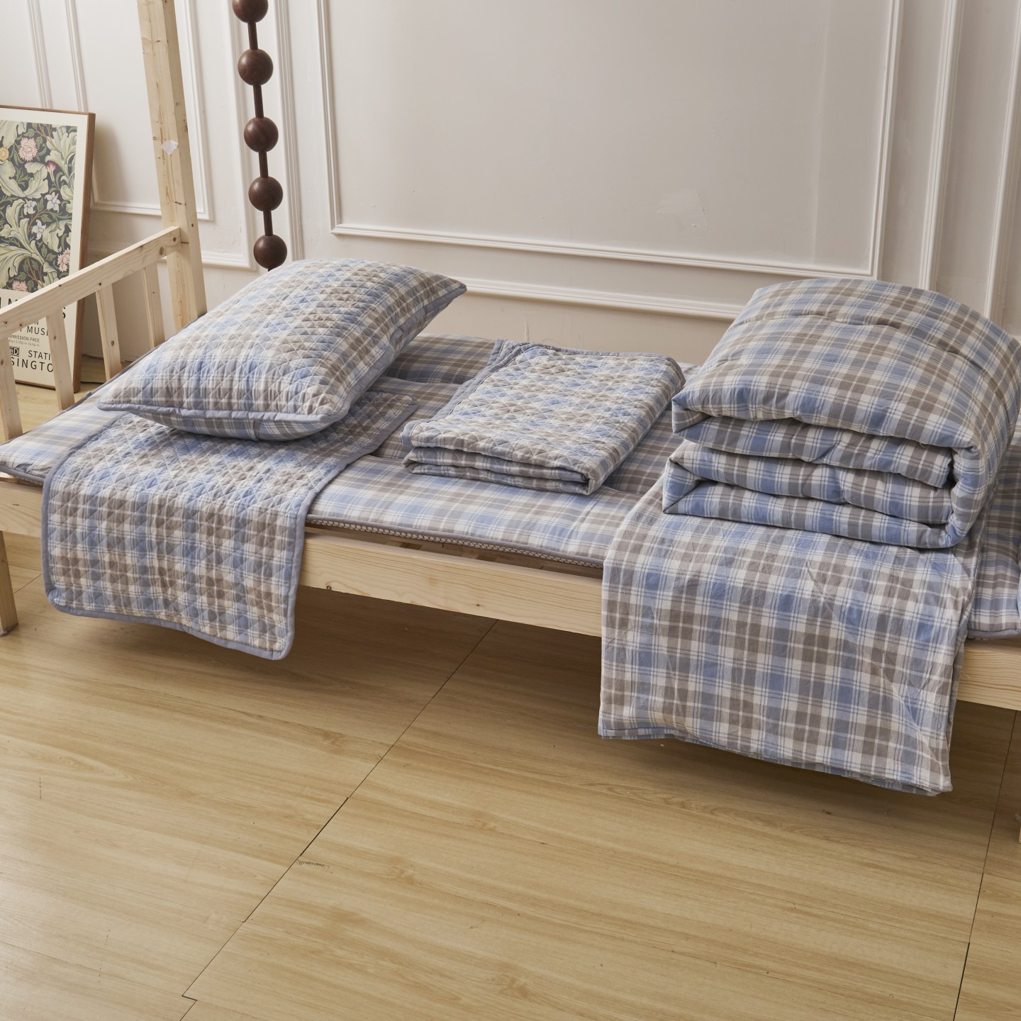 商品名称:上喜 2025新款学生款全棉水洗棉床盖款三件套,五件套 兰大格
