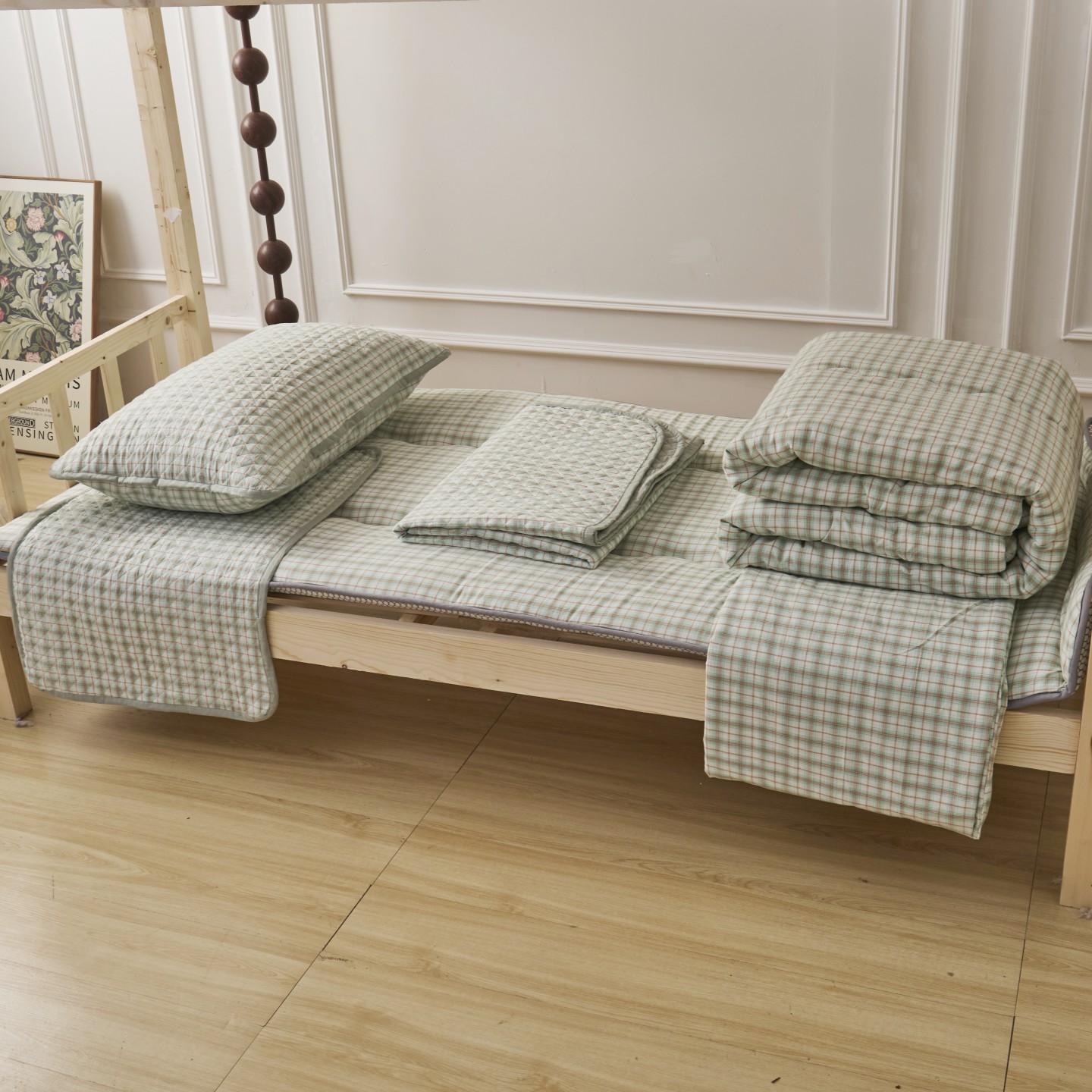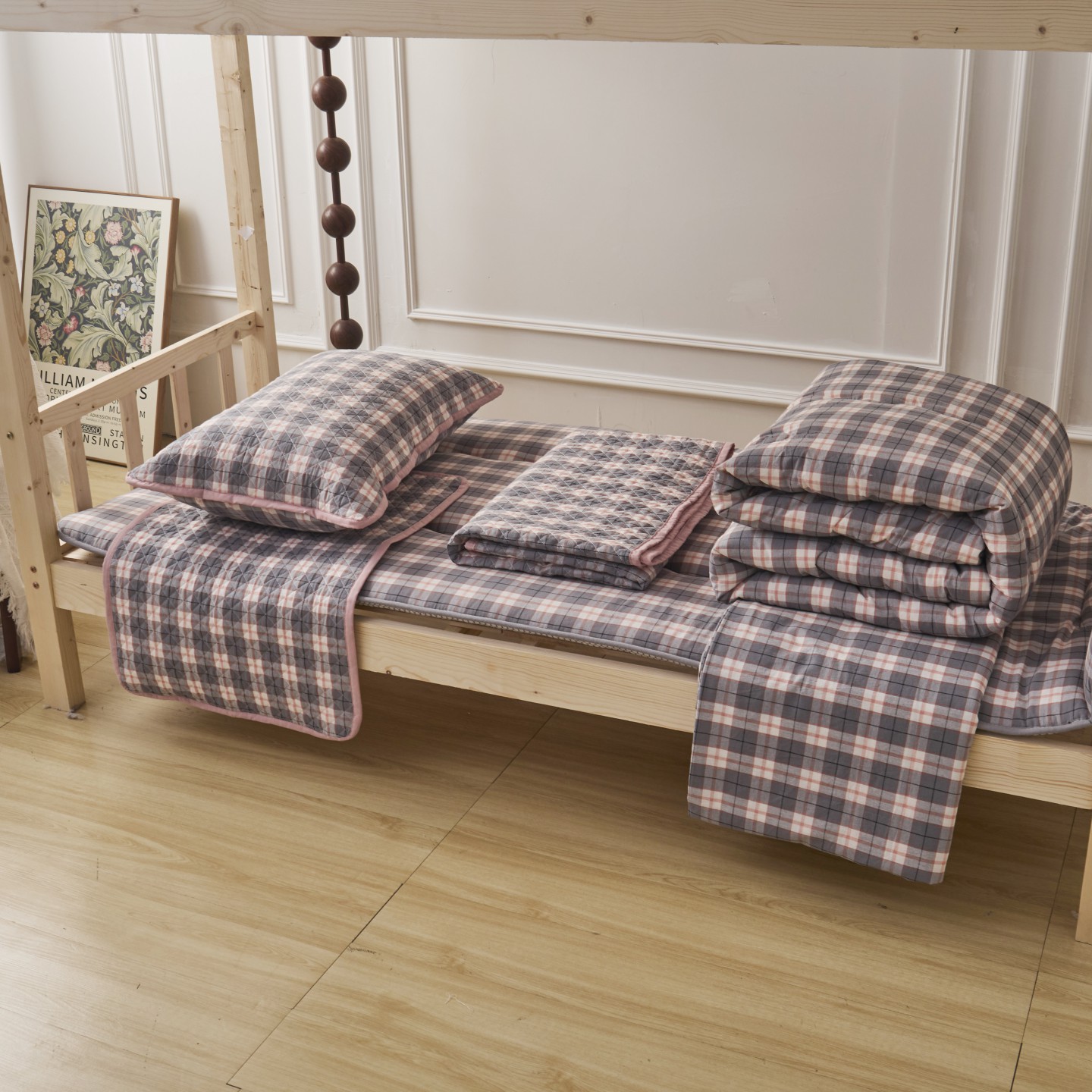 (总)上喜 2025新款学生款全棉水洗棉床盖款三件套,五件套,梵芙格,粉大格,灰粉格,兰大格,绿大格