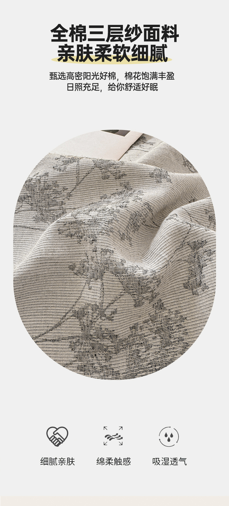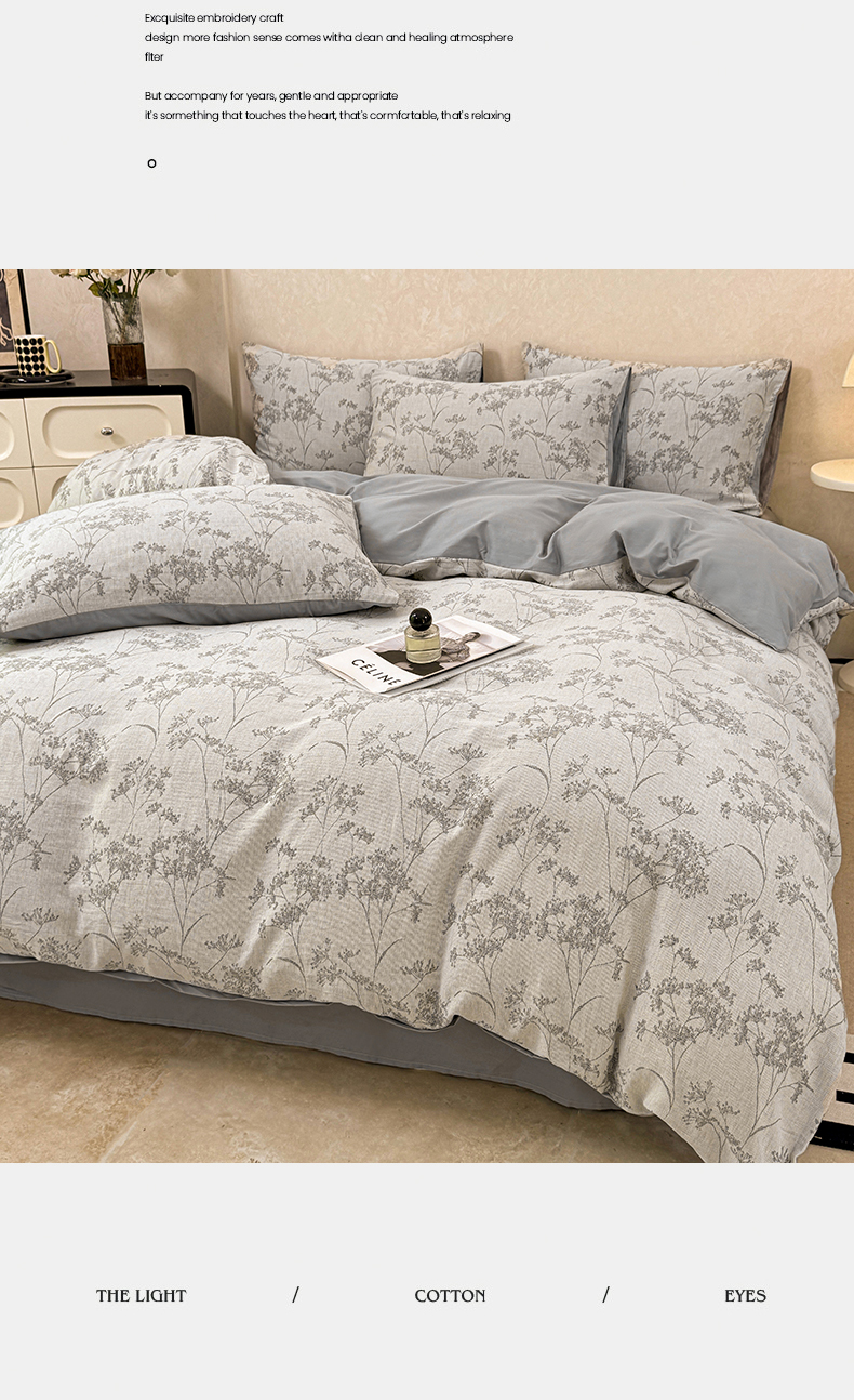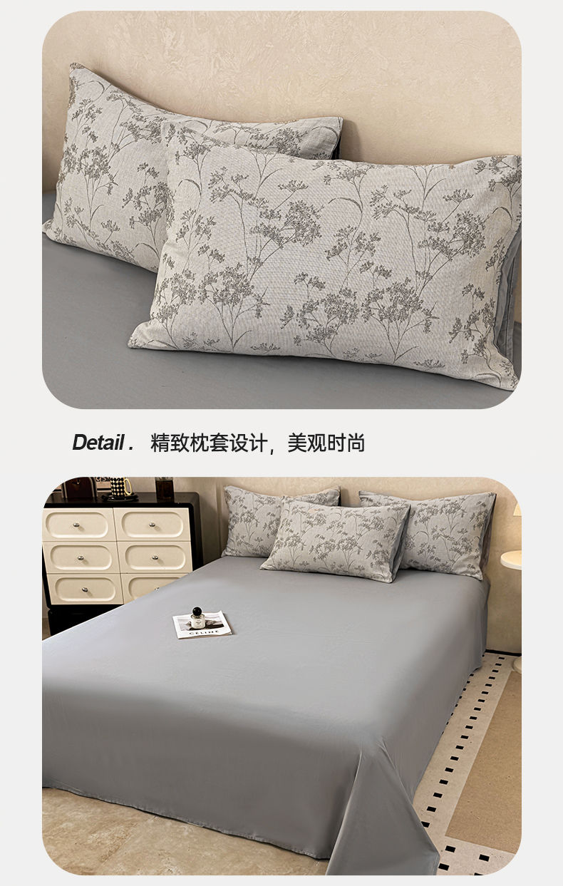 当前位置: 91家纺网 > 商品网购 > 床品套件 > 四件套 > 色织四件套 > 灰鲸2025新款A类全棉三层纱色织提花系列四件套 初春-灰