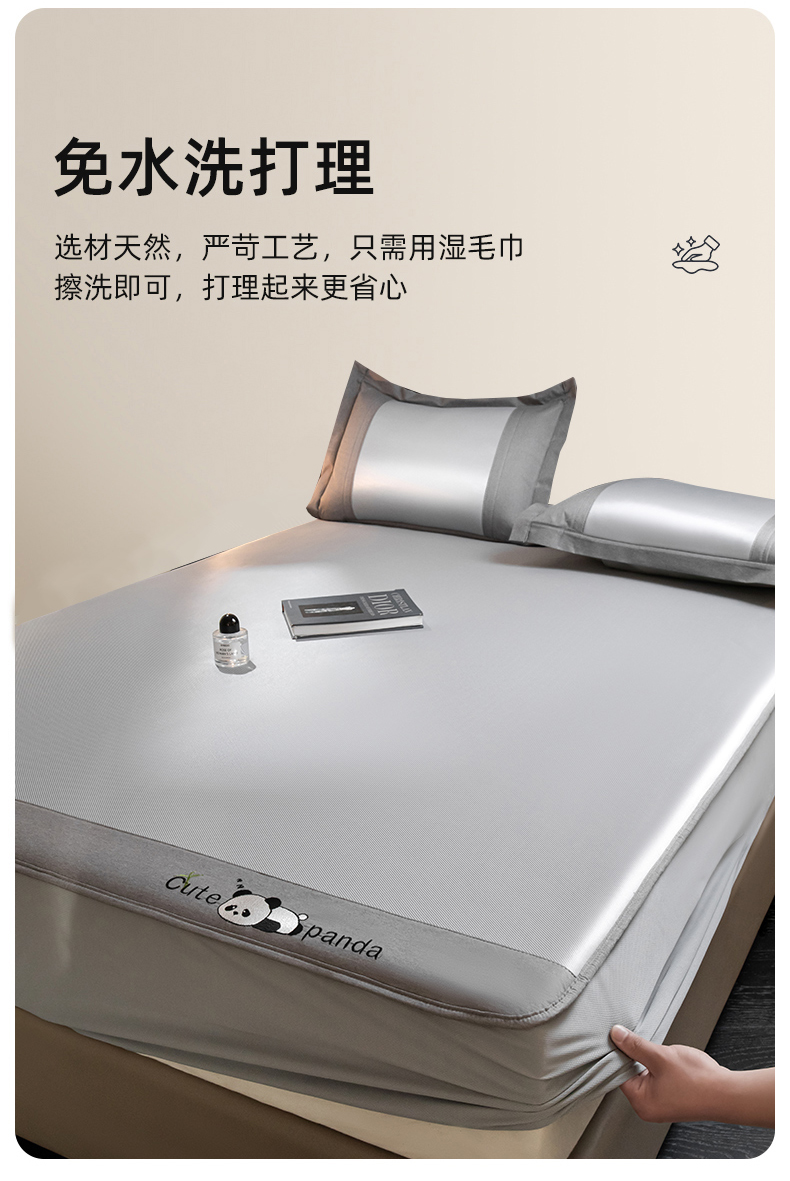 商品名称:莱家富 2025新款轻柔丝凉席冰丝席-嘟嘟熊 高级灰-床笠