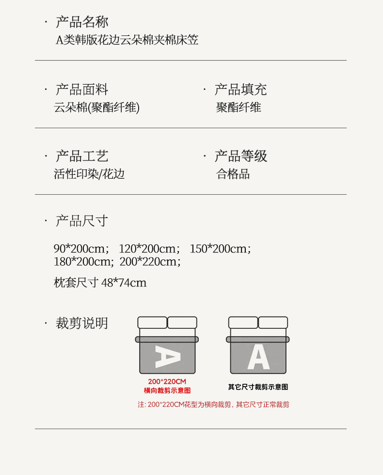 200cmx220cm(横向花型)单床笠 | ¥58.00 |