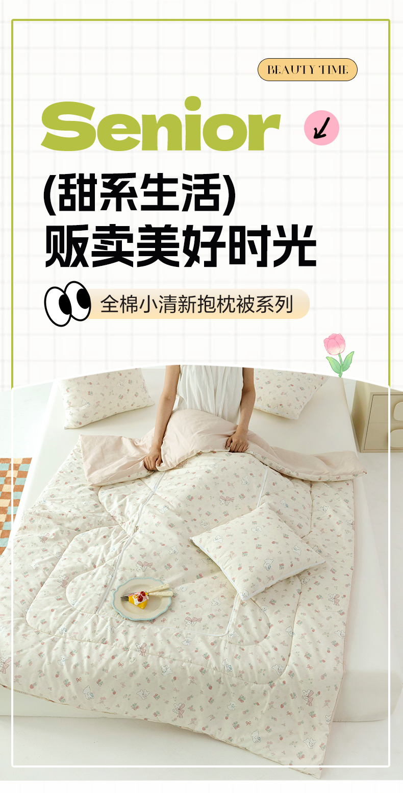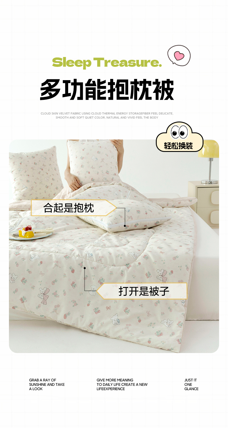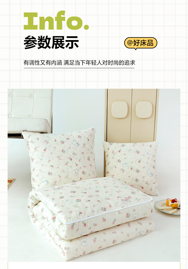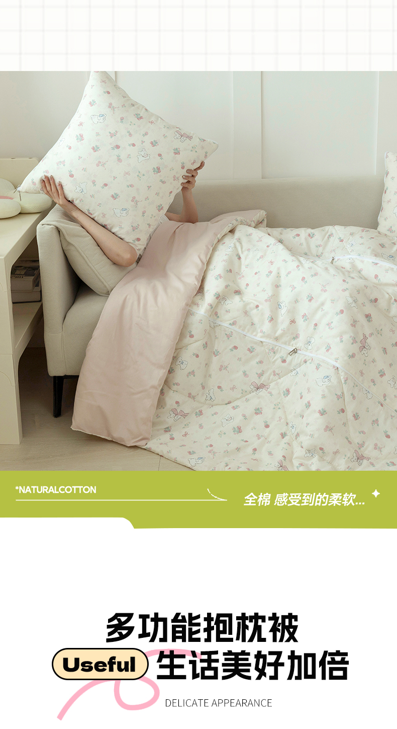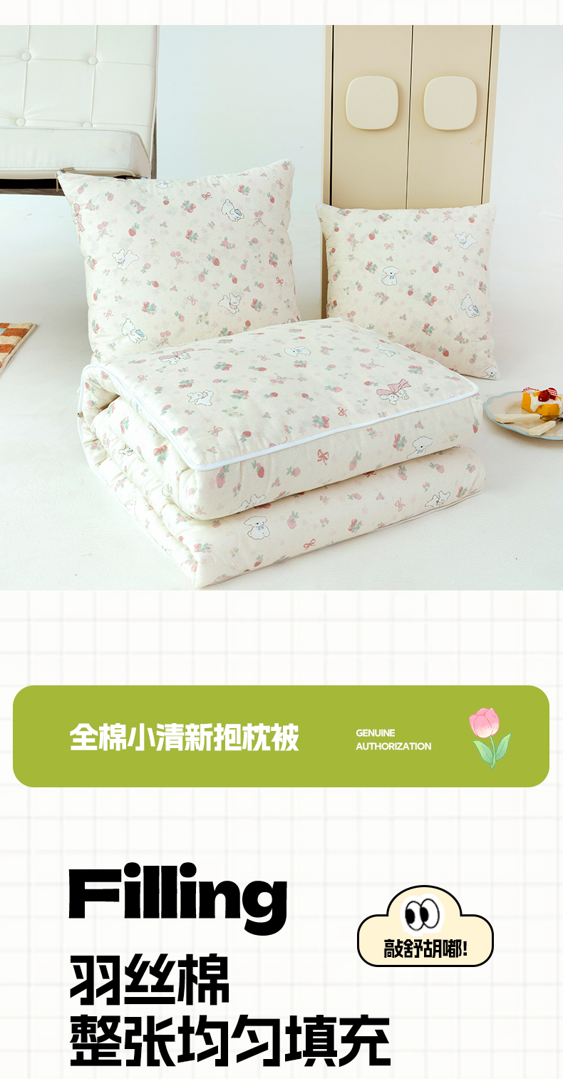 番茄+ 2025新款13370全棉印花卡通抱枕被 草莓狗