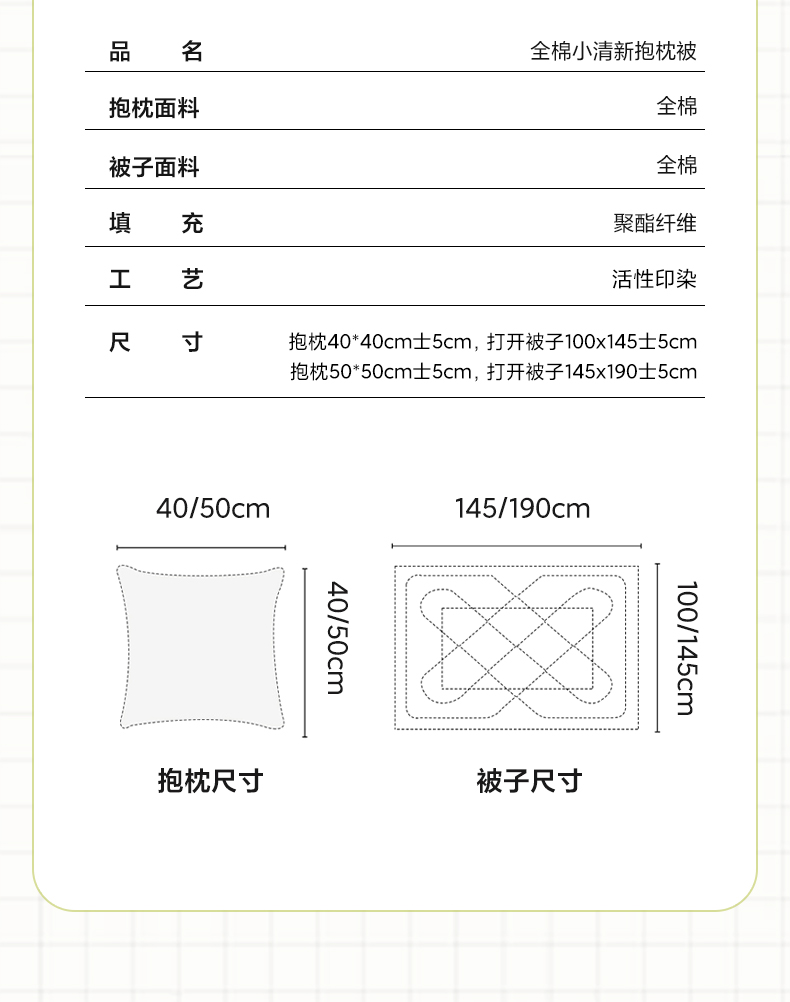 40*40±5cm(被子展开100*145±5cm)