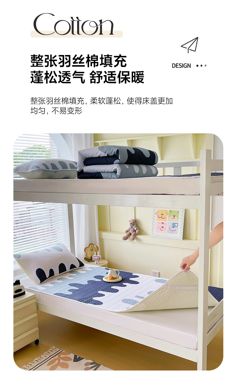 金鑫汇家纺2025新款A类全棉学生宿舍床盖系列单品 奶油蓝