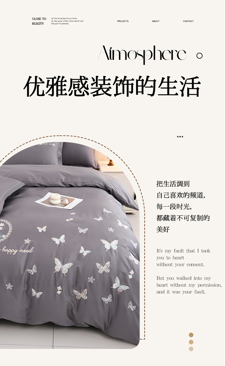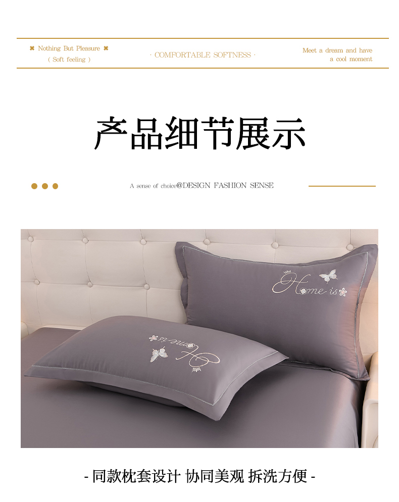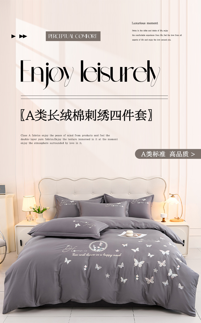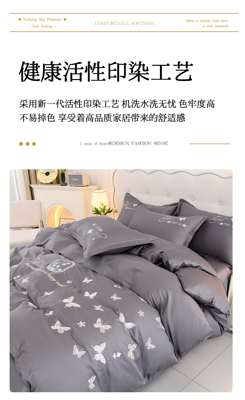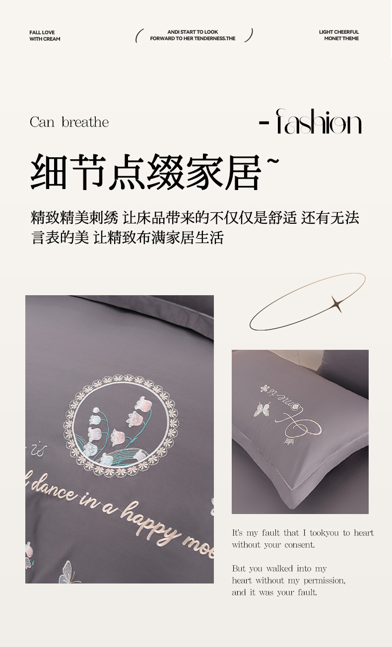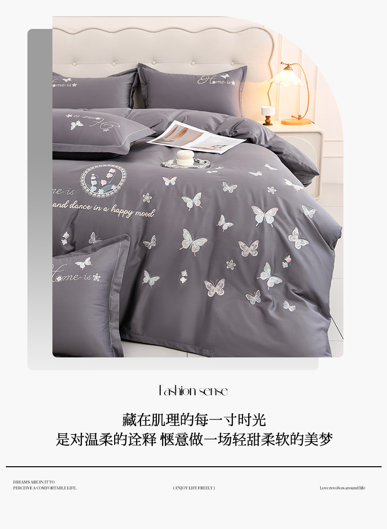 商品名称:登登家纺 2025新款A类长绒棉刺绣四件套-风铃 风铃-灰