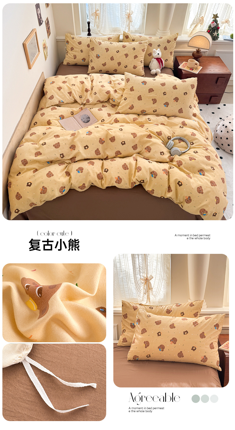 当前位置: 91家纺网 > 商品网购 > 床品套件 > 四件套 > 水洗棉四件套 > 晚爱家纺(原晚安家居) 2025新款超柔水洗棉四件套卡通小清新学生宿舍三件套 复古小熊