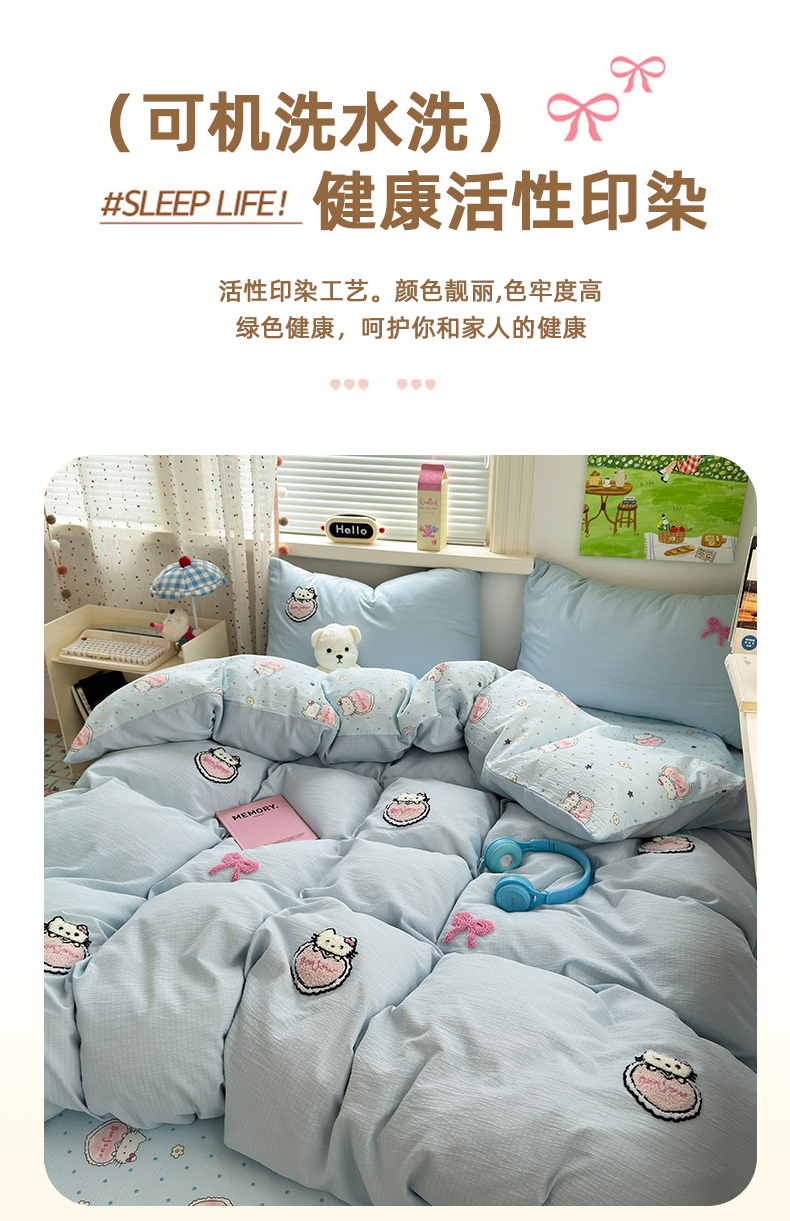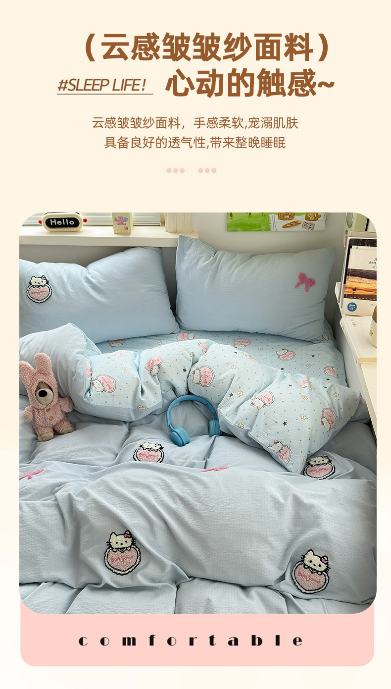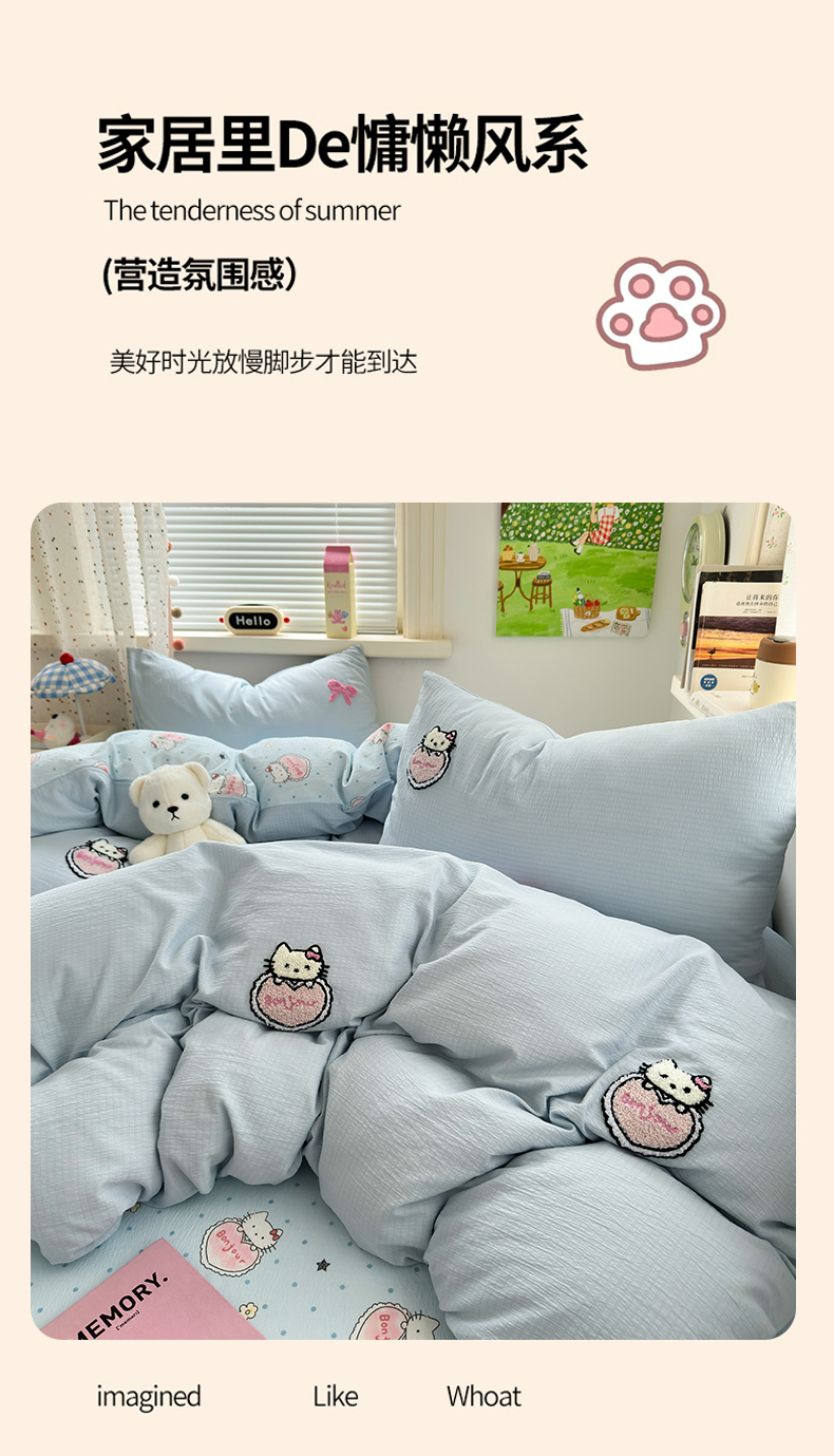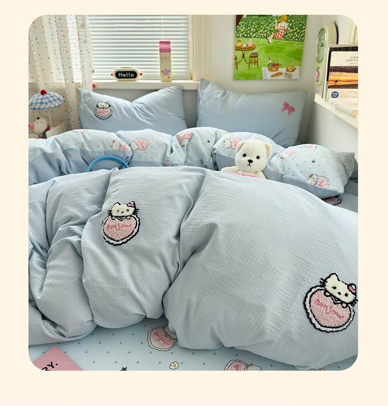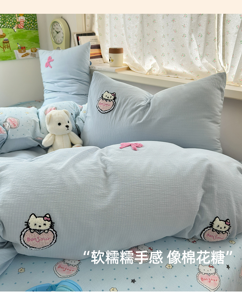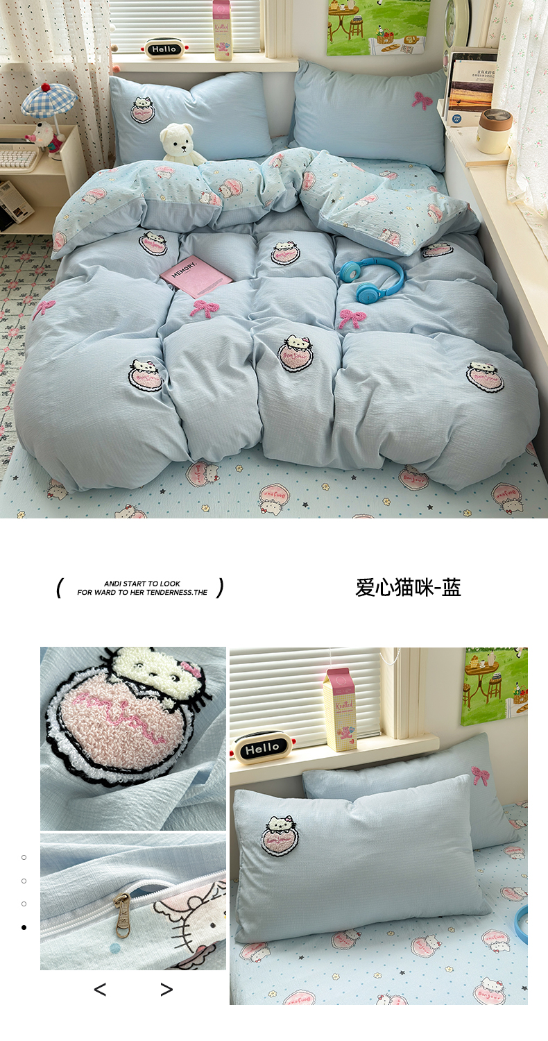 当前位置: 91家纺网 > 商品网购 > 床品套件 > 四件套 > 毛巾绣四件套 > 三元色 2025新款云感毛巾绣四件套 爱心猫咪-蓝