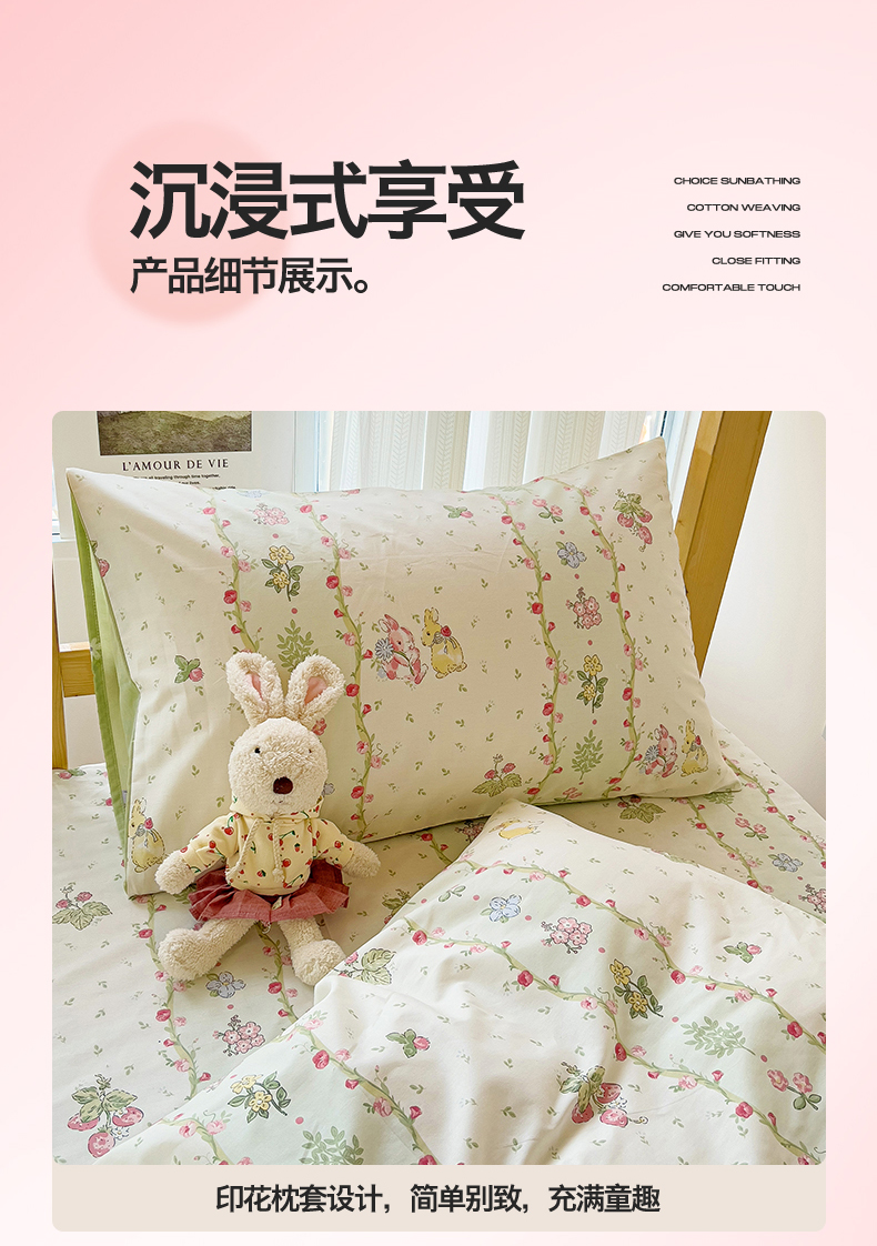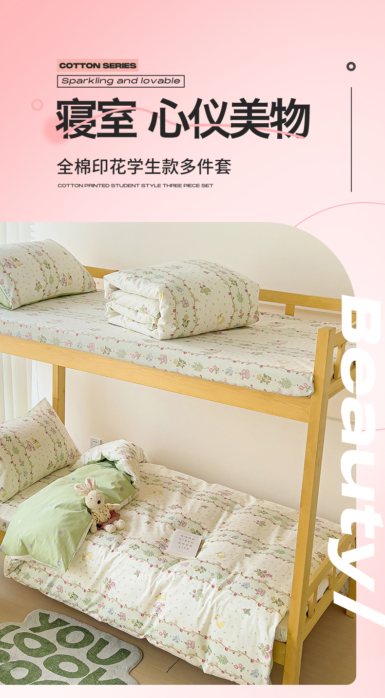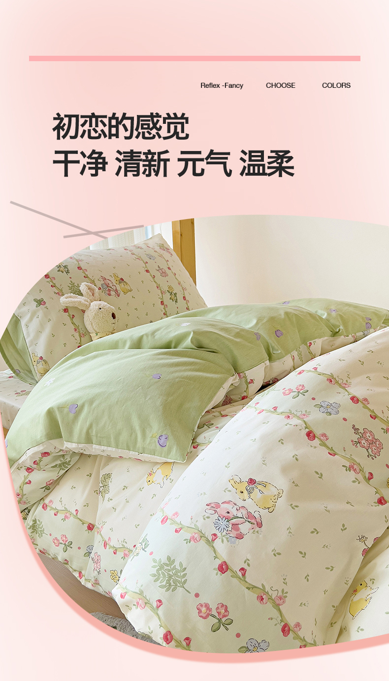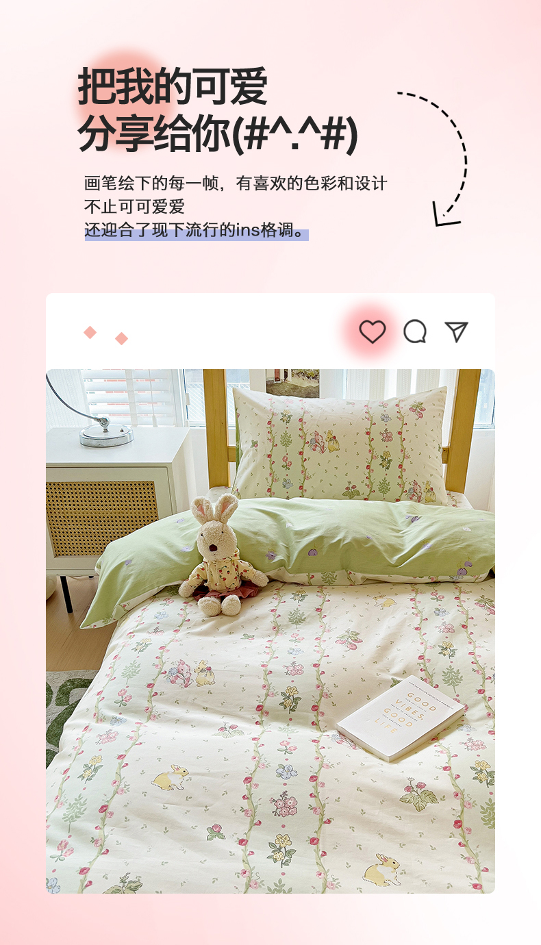 当前位置: 91家纺网 > 商品网购 > 床品套件 > 四件套 > 全棉普通四件套 > 名兮2025新款全棉纯棉13372学生床多件套 甜蜜兔兔