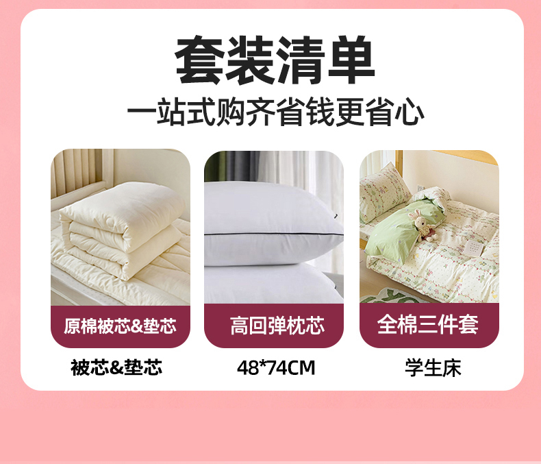 0.9m床五件套 【床单三件套+秋冬被约5斤+枕芯】 | ¥148.00 |