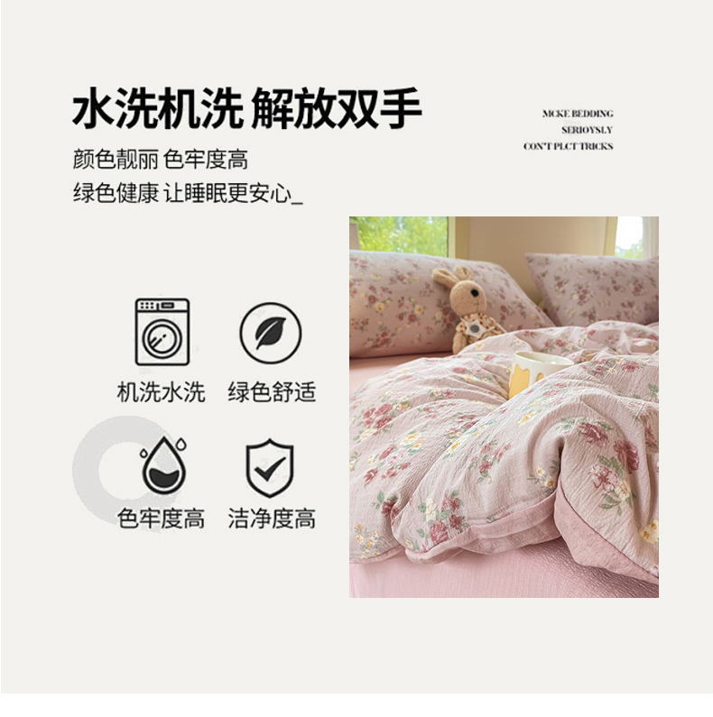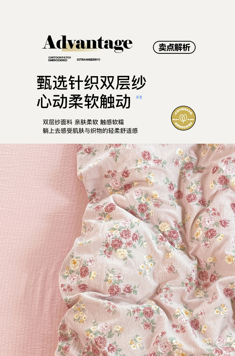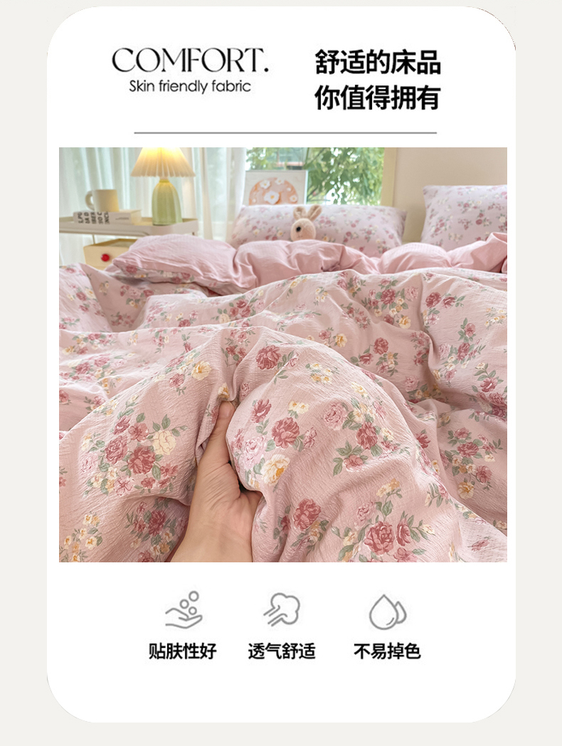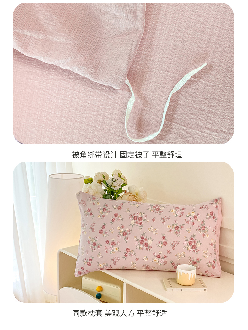 当前位置: 91家纺网 > 商品网购 > 床品套件 > 四件套 > 双层纱四件套 > 雅阁尔家纺 2025新款直播小红书ins风针织提花双层纱四件套小碎花被套床笠三件套-叠拍 玫瑰物语