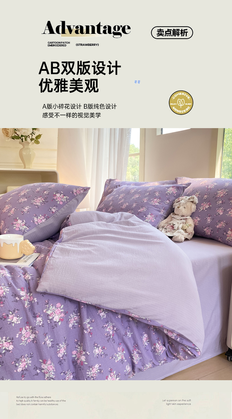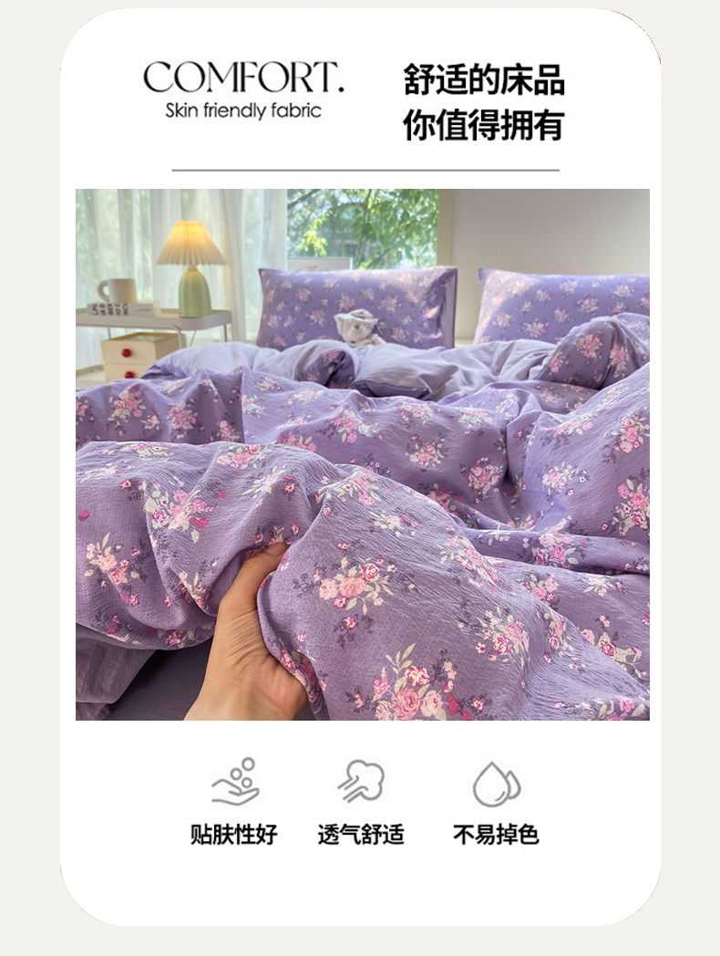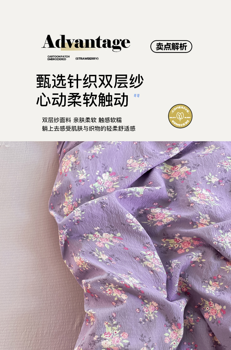 当前位置: 91家纺网 > 商品网购 > 床品套件 > 四件套 > 双层纱四件套 > 雅阁尔家纺 2025新款直播小红书ins风针织提花双层纱四件套小碎花被套床笠三件套-平铺 豆蔻年华