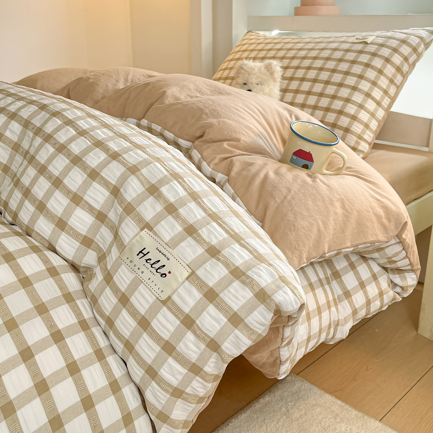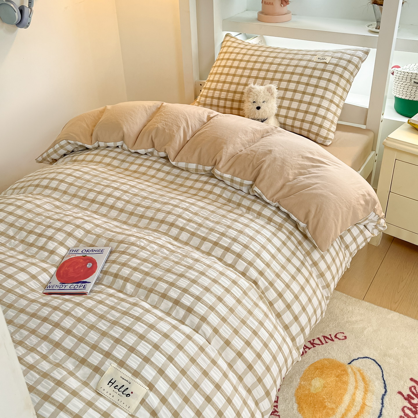 当前位置: 91家纺网 > 商品网购 > 床品套件 > 四件套 > 双层纱四件套 > 顾里2025新款韩系格子阳离子泡泡纱学生宿舍上下铺三件套 复古奶咖