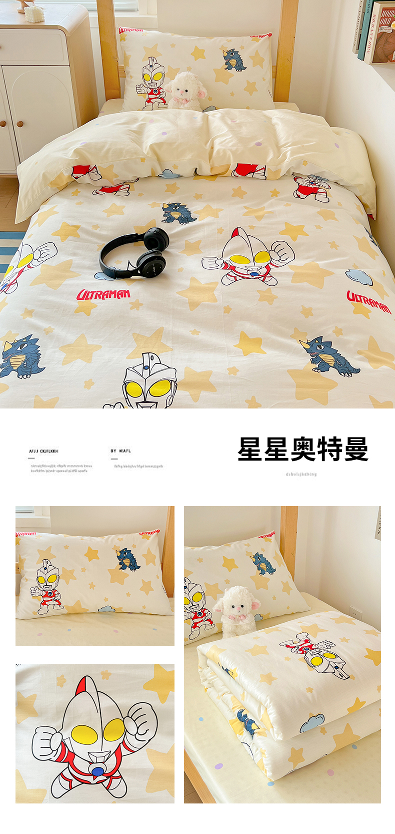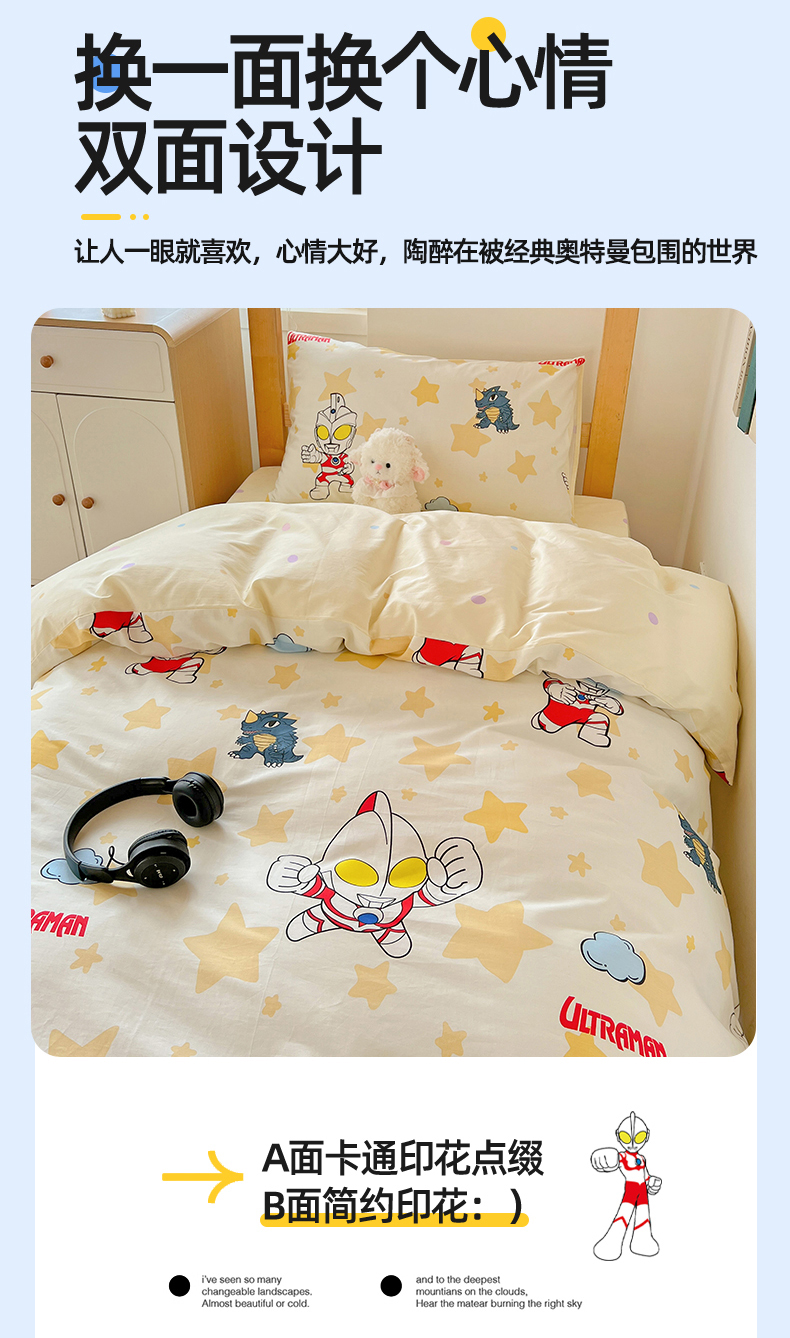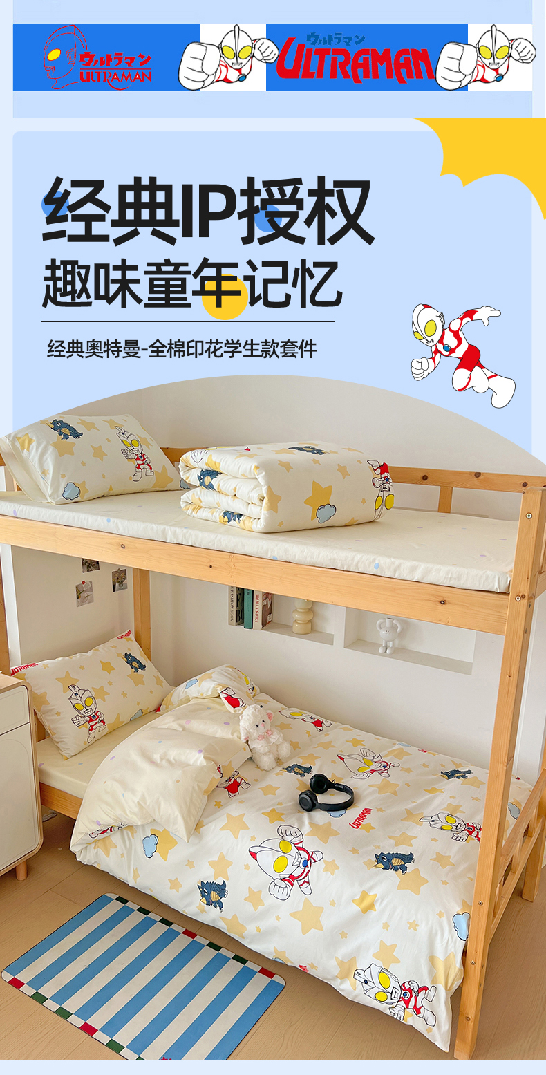 当前位置: 91家纺网 > 商品网购 > 床品套件 > 多件套 > 多件套 > 名兮家居 2025-全棉纯棉13372经典奥特曼-三丽鸥学生床多件套【含防伪标】 星星奥特曼