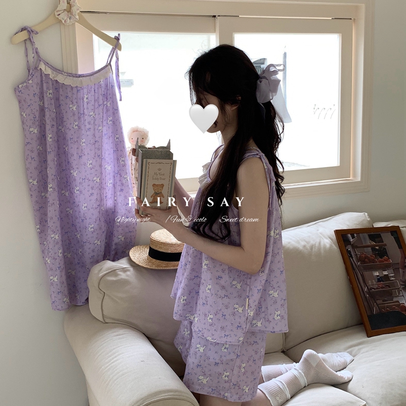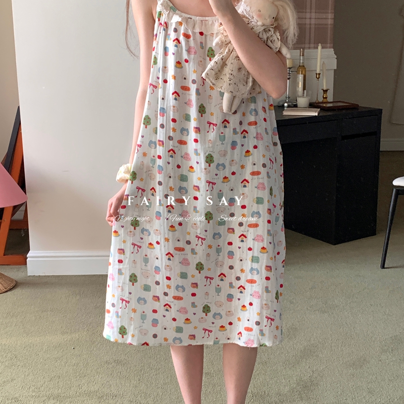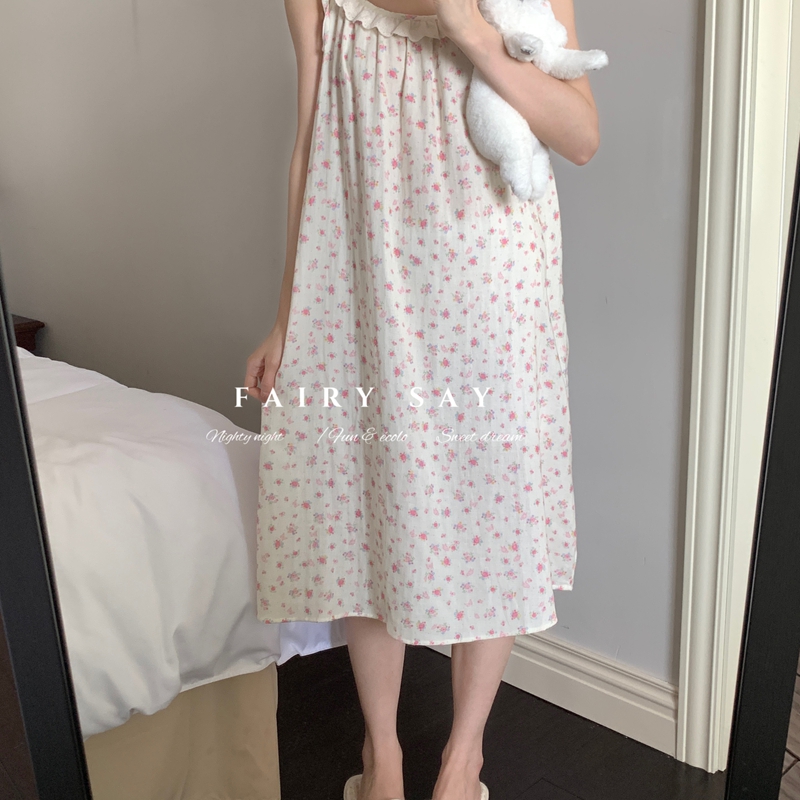 当前位置: 91家纺网 > 商品网购 > 居家日用 > 睡衣/家居服套装 > 妍景家居生活馆 2025新款纱布吊带睡裙 碎花蝴蝶