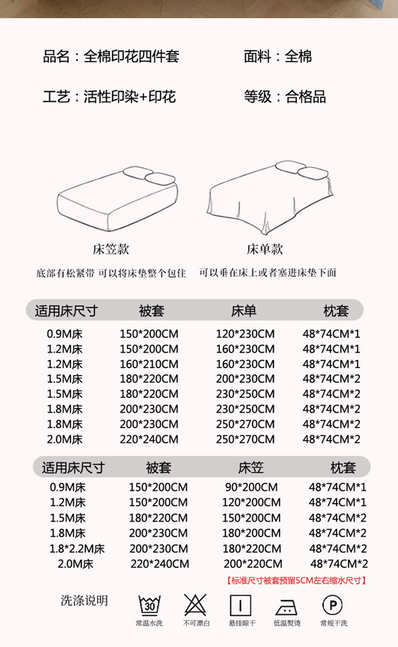 200*230cm直角床单+枕套2只