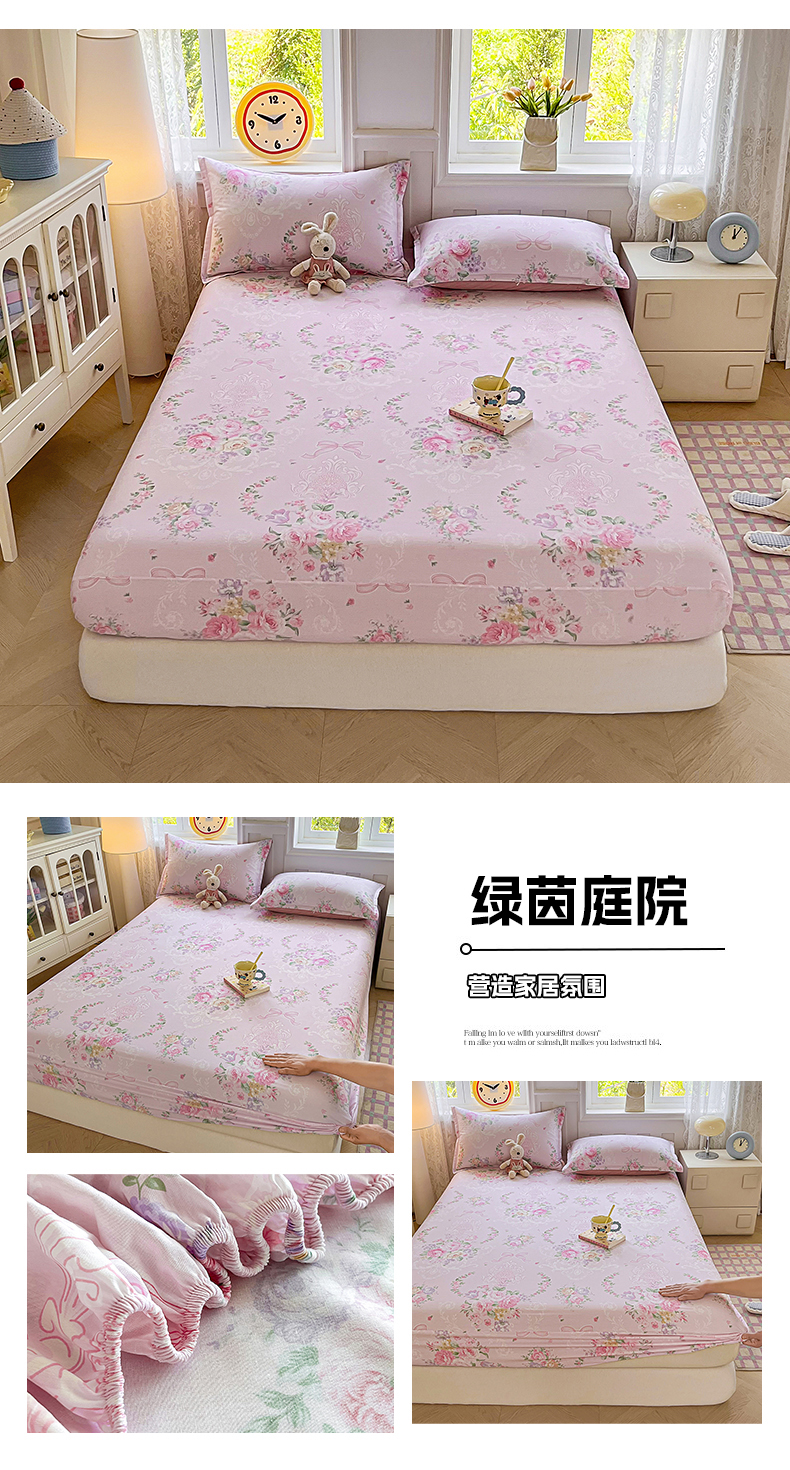 • 91家纺网 家纺一手货源 找家纺 禧安居 2025新款高支高密活性印染全棉印花床笠全棉床笠单床笠 绿茵庭院