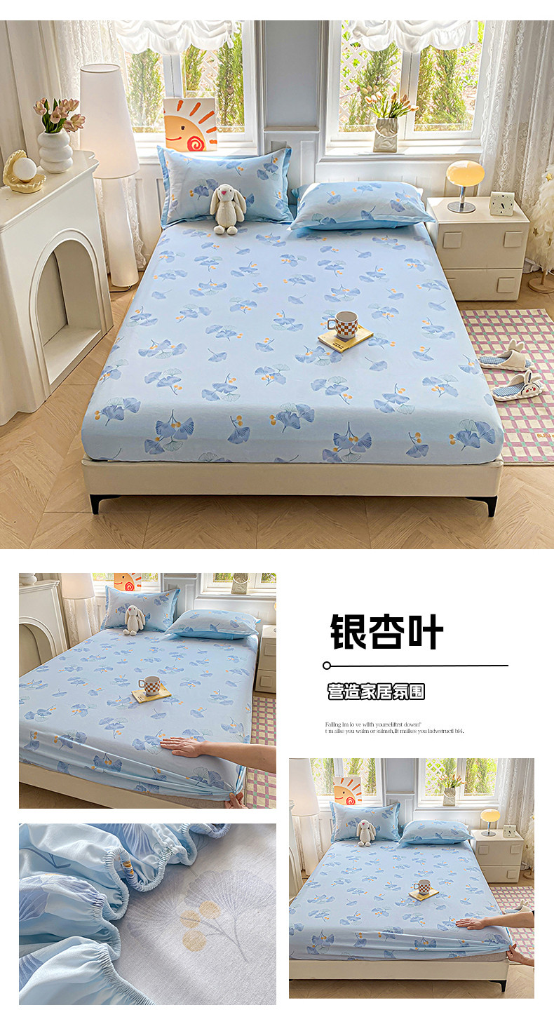 • 91家纺网 家纺一手货源 找家纺 禧安居 2025新款高支高密活性印染全棉印花床笠全棉床笠单床笠 银杏叶