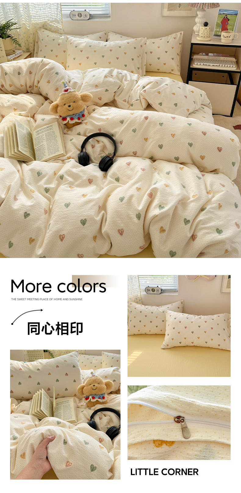 (总)彩韵家纺 2025新款水洗双层纱双拼碎花四件套,彩色波点,爱心蝴蝶结,多彩心情,分格棋盘,格纹猫咪,黑色波点,花园兔子,欢乐聚会,欢乐小狗,可爱猫猫,腊肠狗狗,满满花海,美好心情,藤条花蔓,甜点小屋,甜甜小兔,甜心猫咪,晚安世界,小花朵朵,小小樱桃
