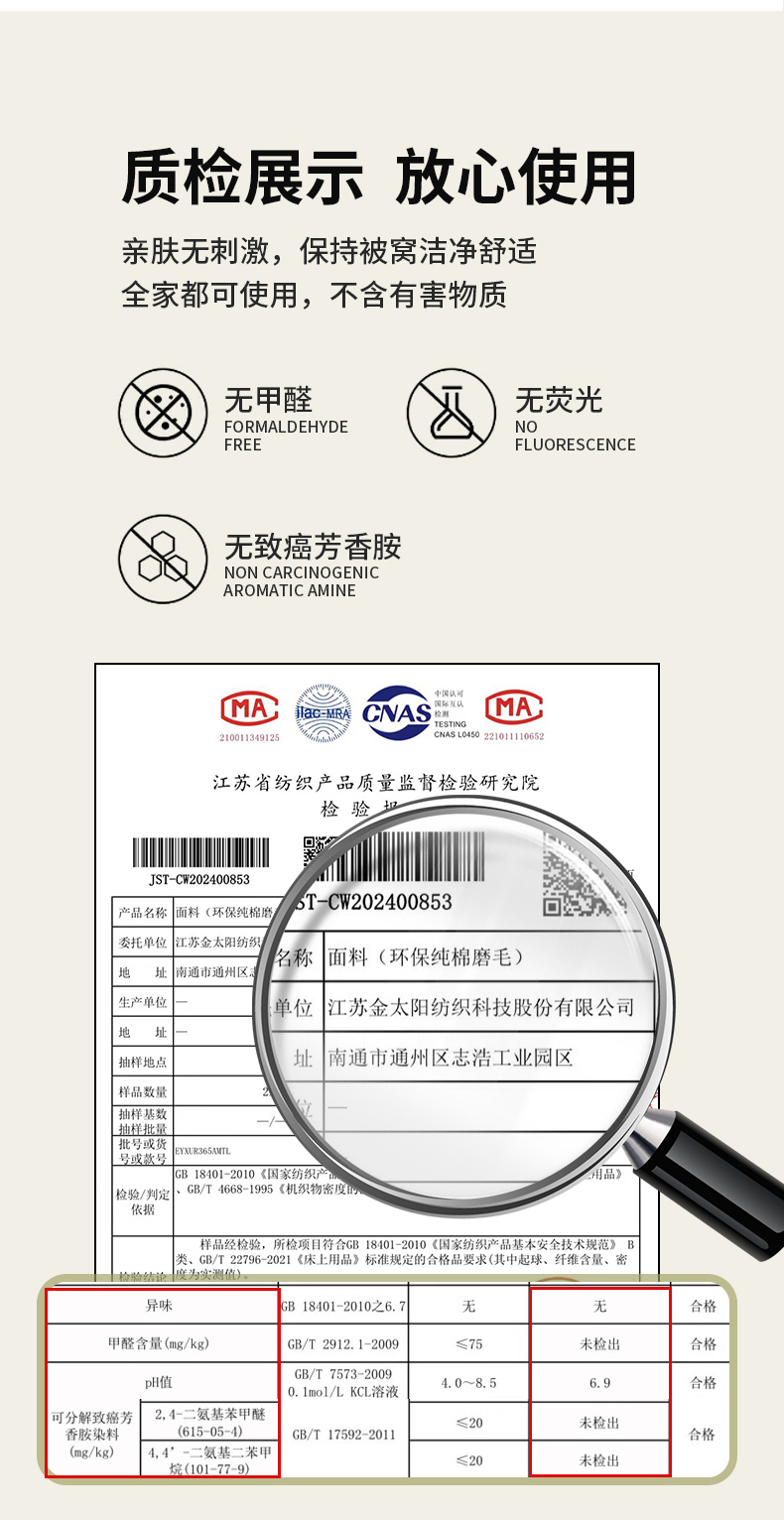 4、通州区市场监管局川姜分局友情提醒:近期针对抗静电,无静电,抗菌防螨,及有关舒适度,百分比的举报高发。为不影响商品正常销售,请各商家高度重视,自检自查及时整改,谢谢配合!