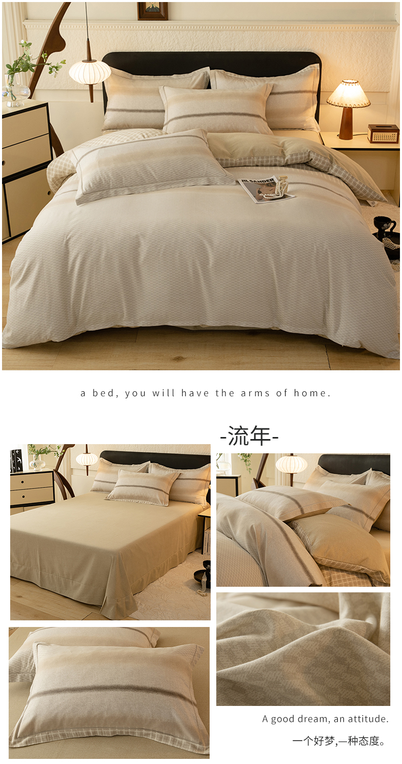 商品名称:磨毛世家家纺2025新款金太阳铂金四件套加厚四件套 流年