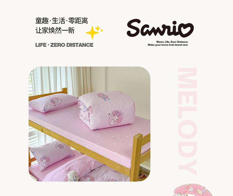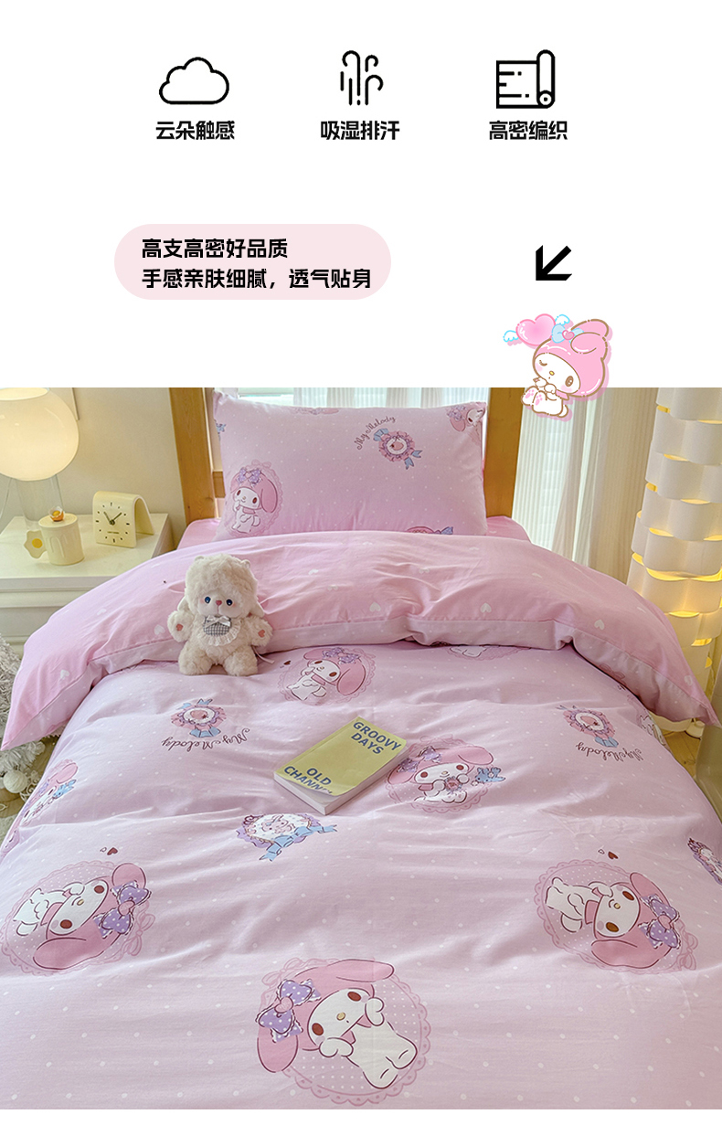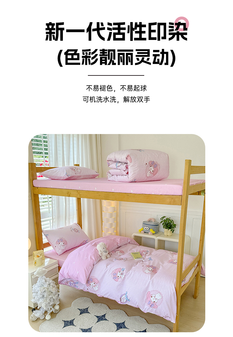 商品名称:玉元坊 2025新款三丽鸥全棉纯棉学生款学生宿舍上下铺三件套 小兔美乐蒂