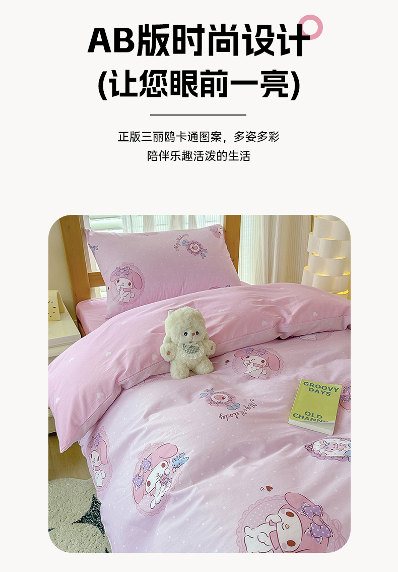 (总)玉元坊 2026新款正版授权三丽鸥系列全棉纯棉床单四件套学生三件套-美乐蒂系列,粉格美乐蒂【简约款】,乖乖美乐蒂【简约款】,蝴蝶结美乐蒂【简约款】,开心美乐蒂【简约款】,可可美乐蒂【简约款】,魔法美乐蒂【简约款】,甜甜美乐蒂【简约款】,小兔美乐蒂【简约款】