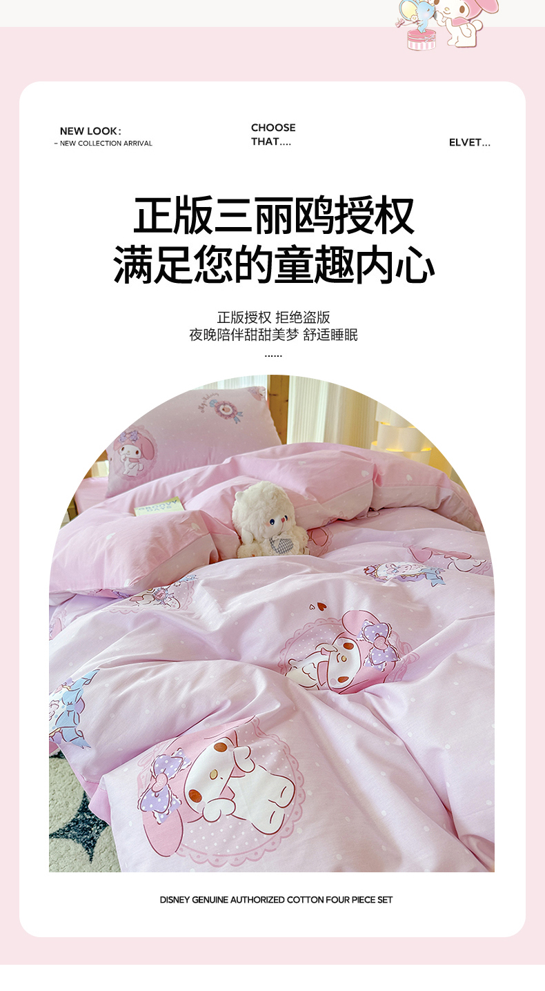 (总)玉元坊 2025新款正版授权三丽鸥系列全棉纯棉三四件套 基础款,蛋糕美乐蒂-基础款,粉兔草莓-基础款,粉兔亲亲-基础款,糖果美乐蒂-基础款,甜品美乐蒂-基础款,甜筒美乐蒂-基础款,甜心美乐蒂-基础款,玩偶美乐蒂-基础款,星黛美乐蒂-基础款