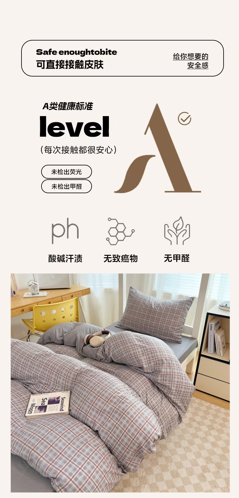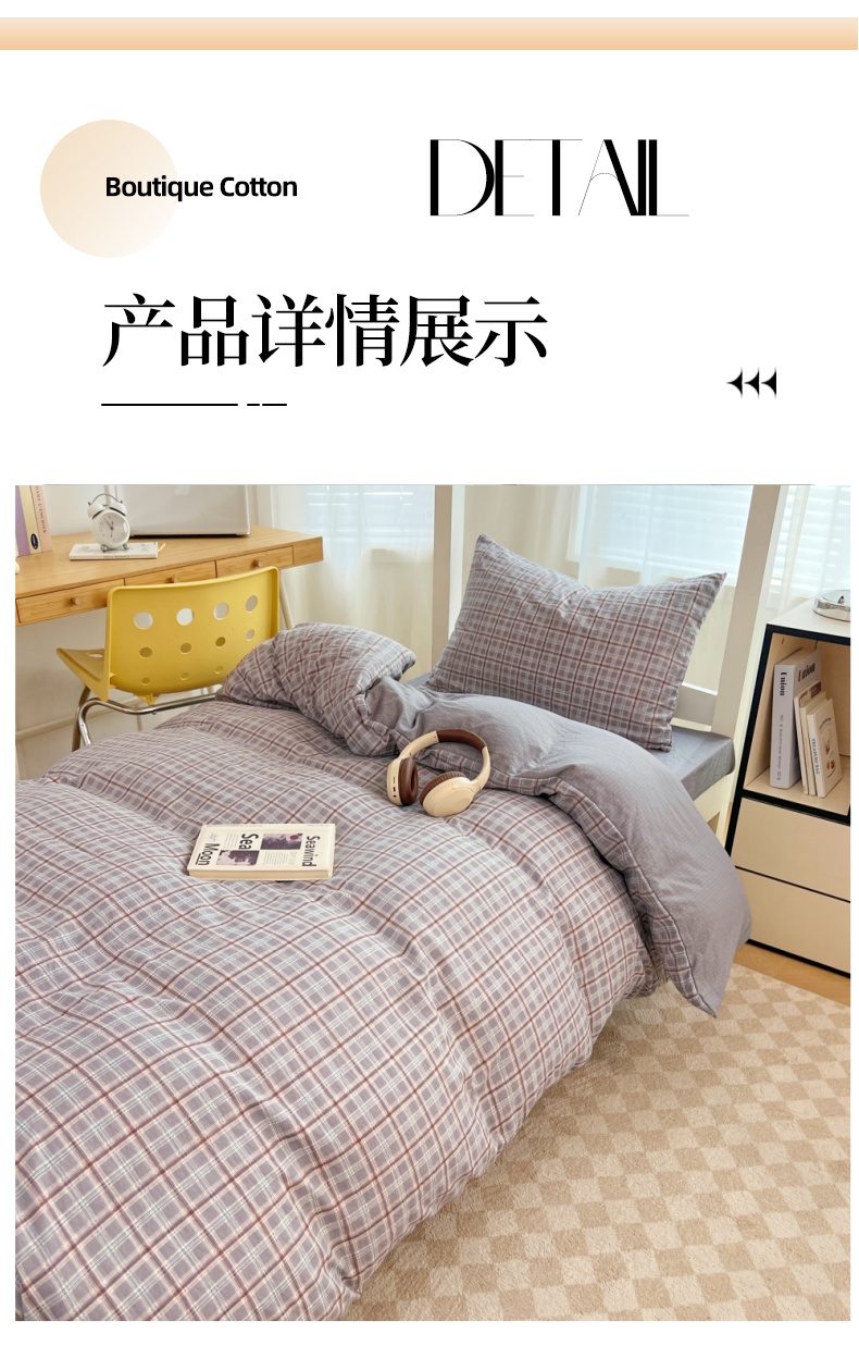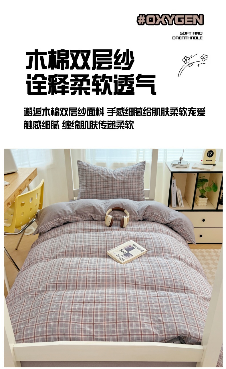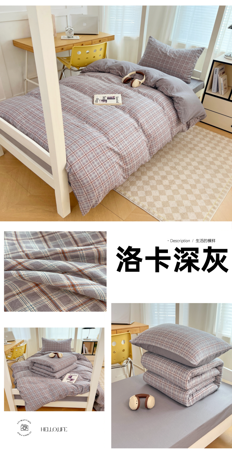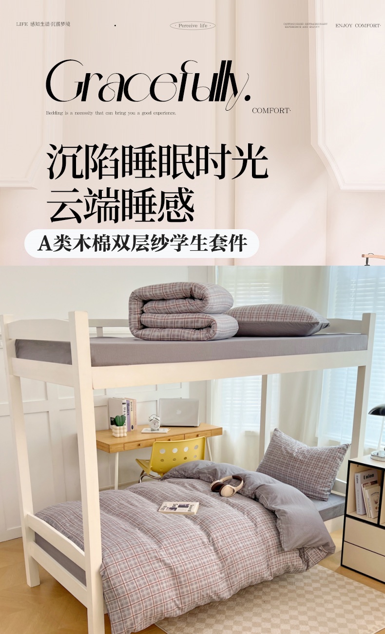 商品名称:梦舒羽 2025新款双层纱格子学生宿舍上下铺套件 常规款-洛卡深灰