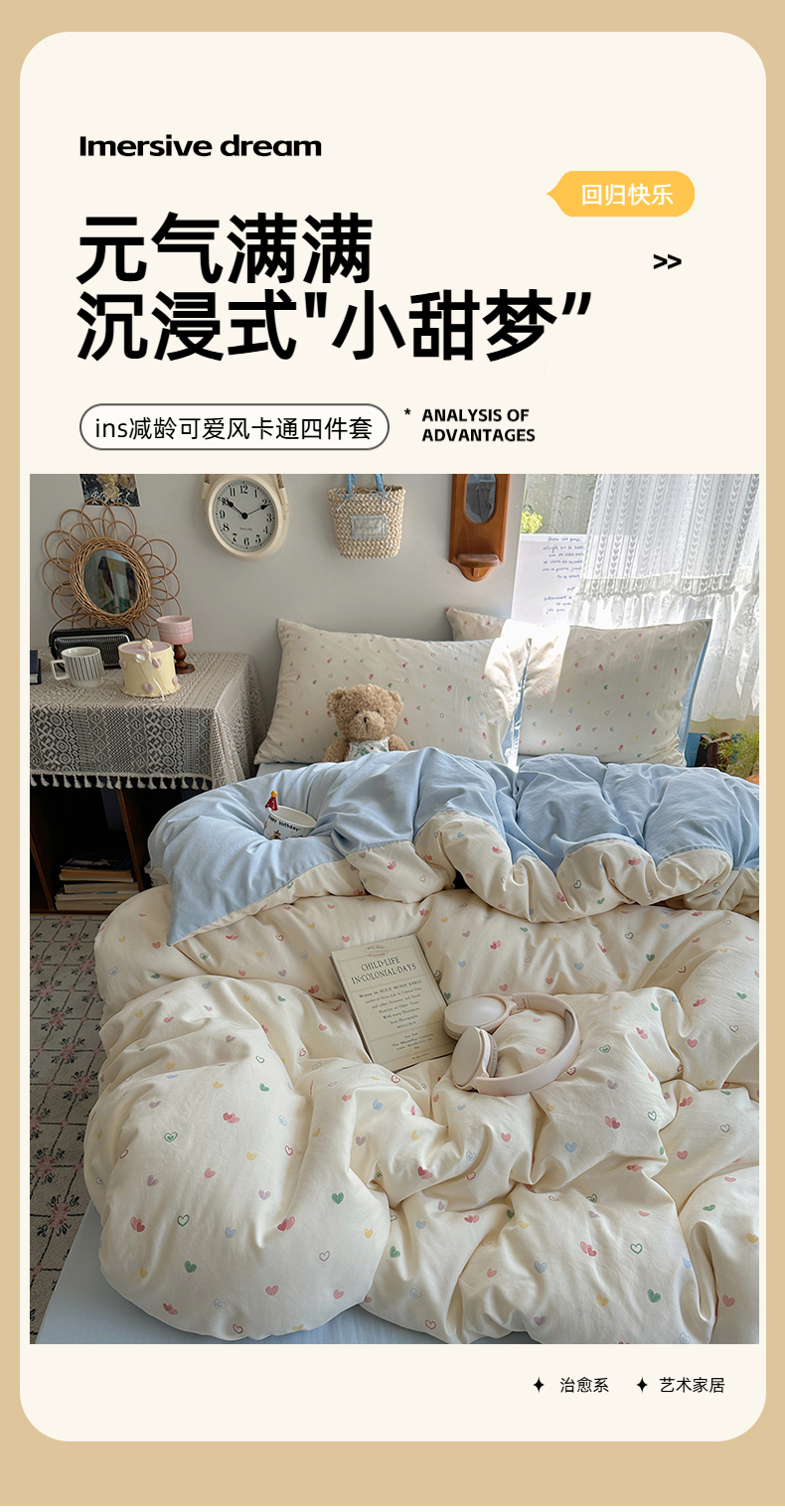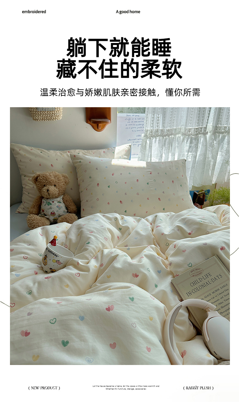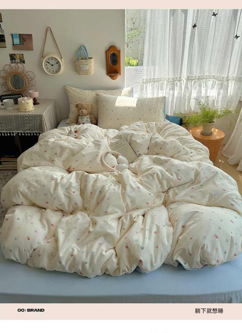 当前位置: 91家纺网 > 商品网购 > 床品套件 > 四件套 > 水洗棉四件套 > 沐芷 2025 开学季水洗棉四件套A类 卡通简约风超柔舒适三件套 爱情手礼