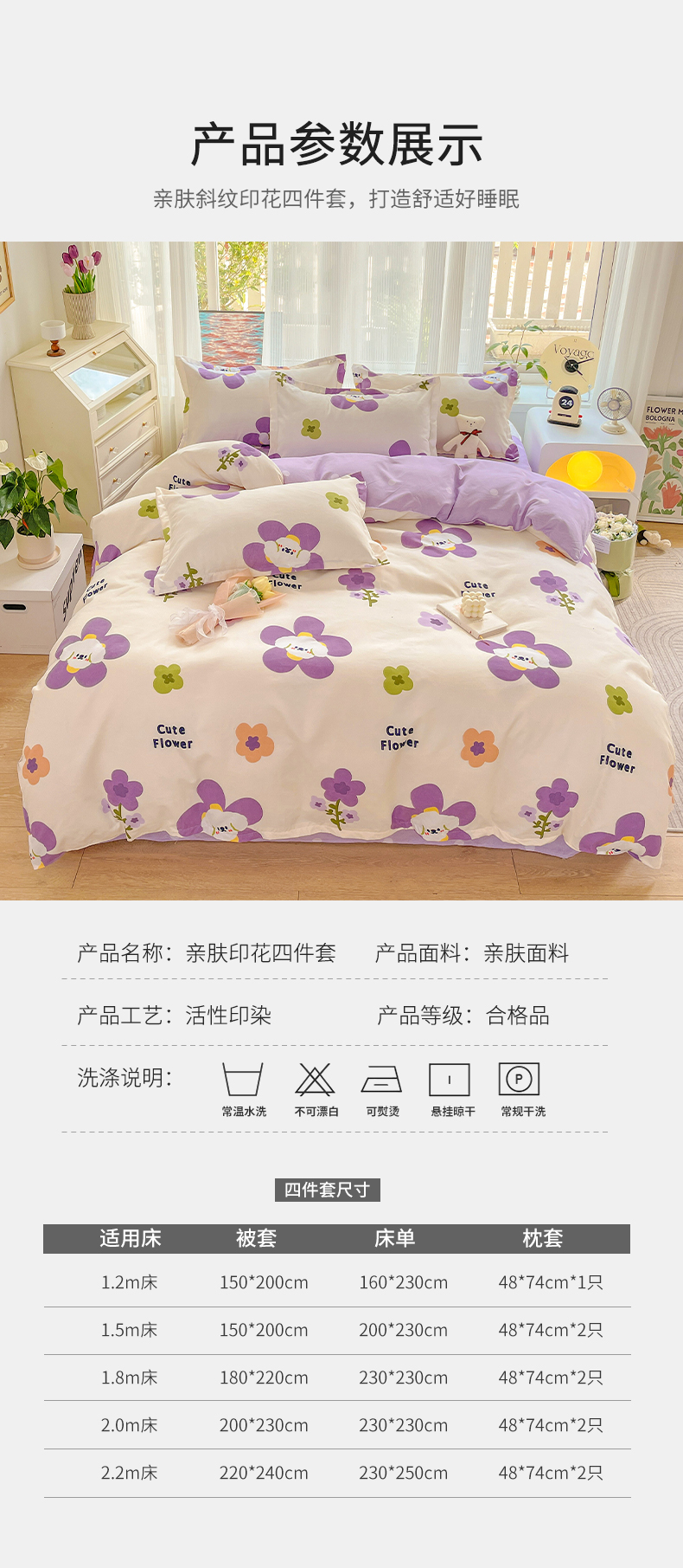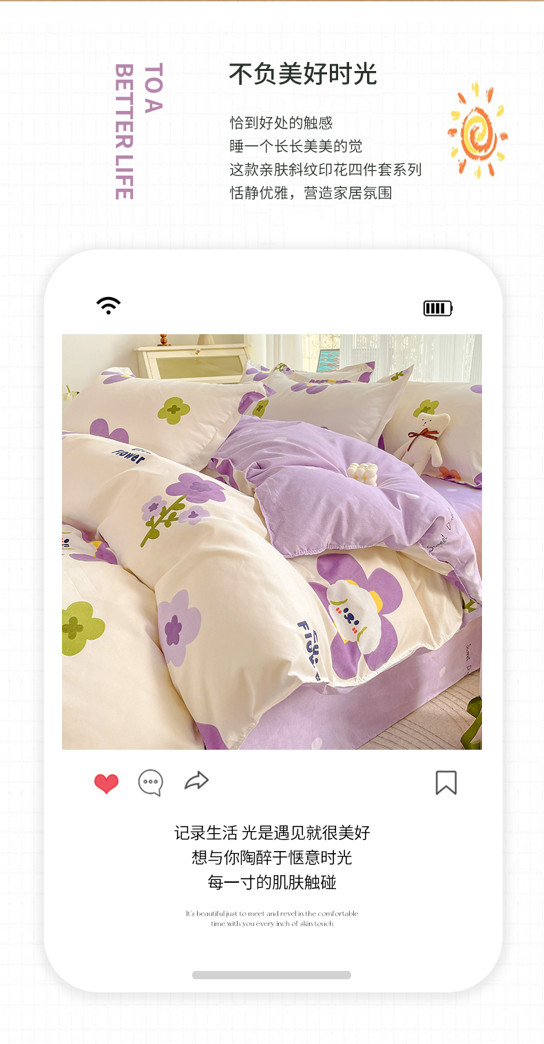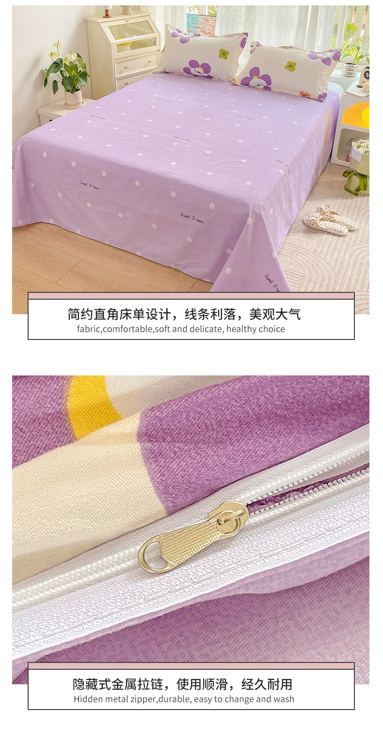 商品名称:文黛家居 2025新款植物羊绒亲肤小版花单被套 花香怡人-紫