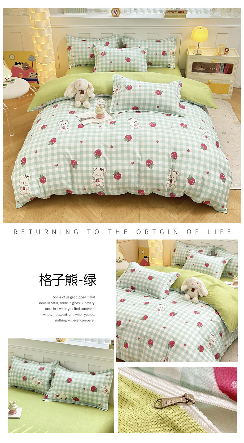 商品名称:佑泽家纺 2025活性印花芦荟棉四件套 格子熊-绿
