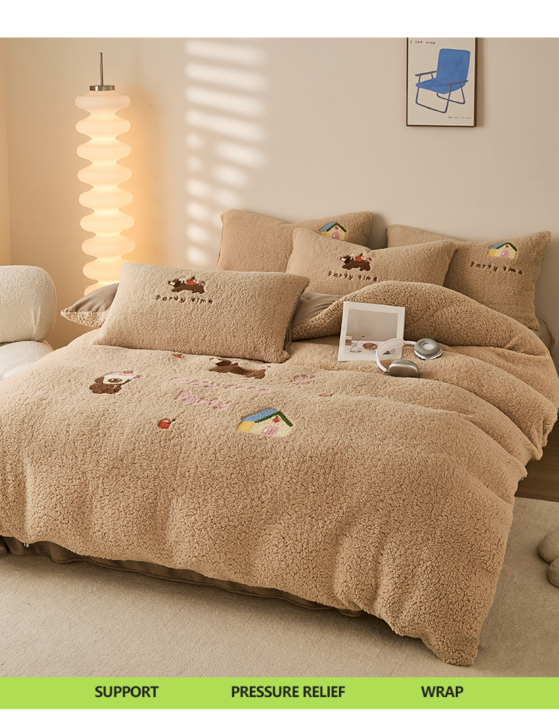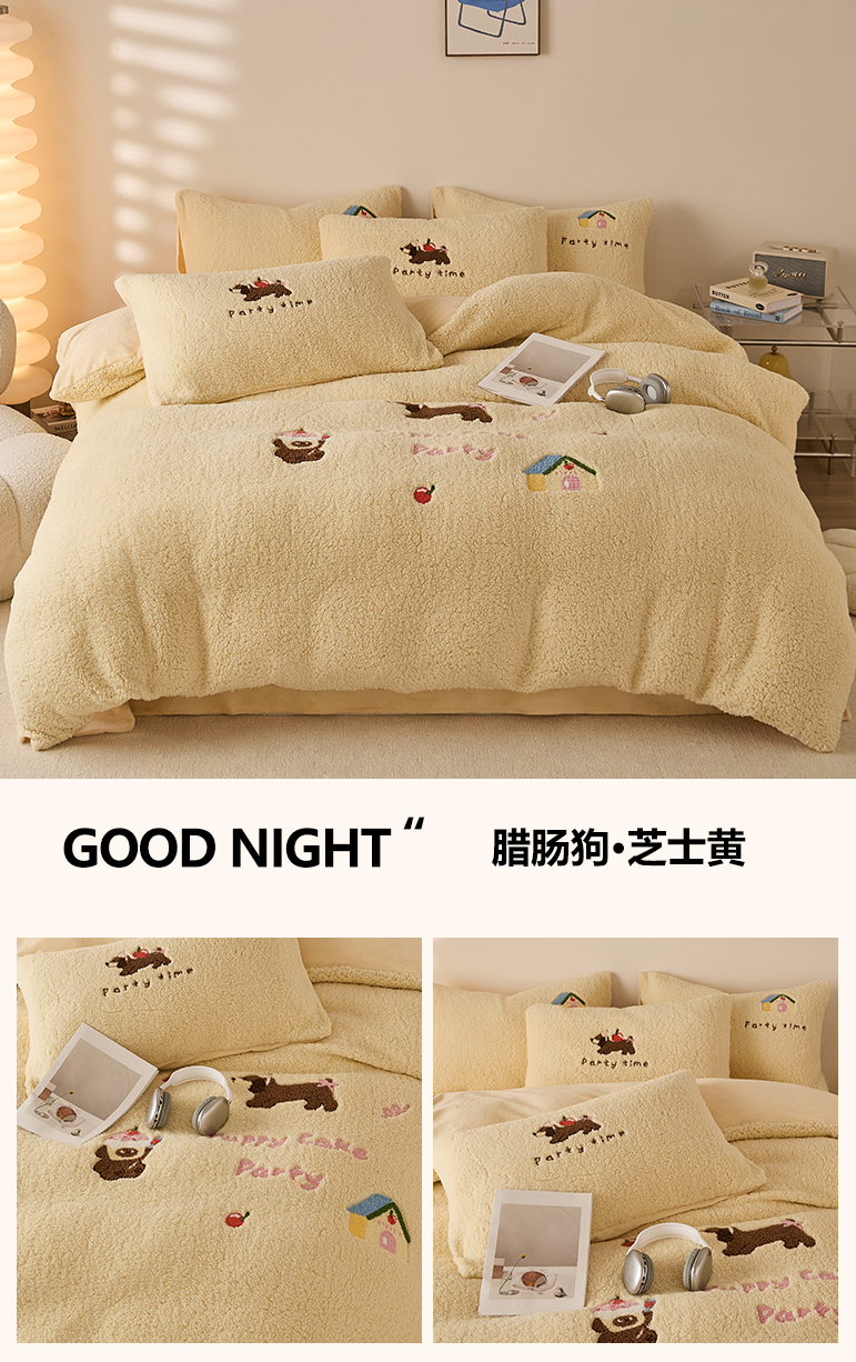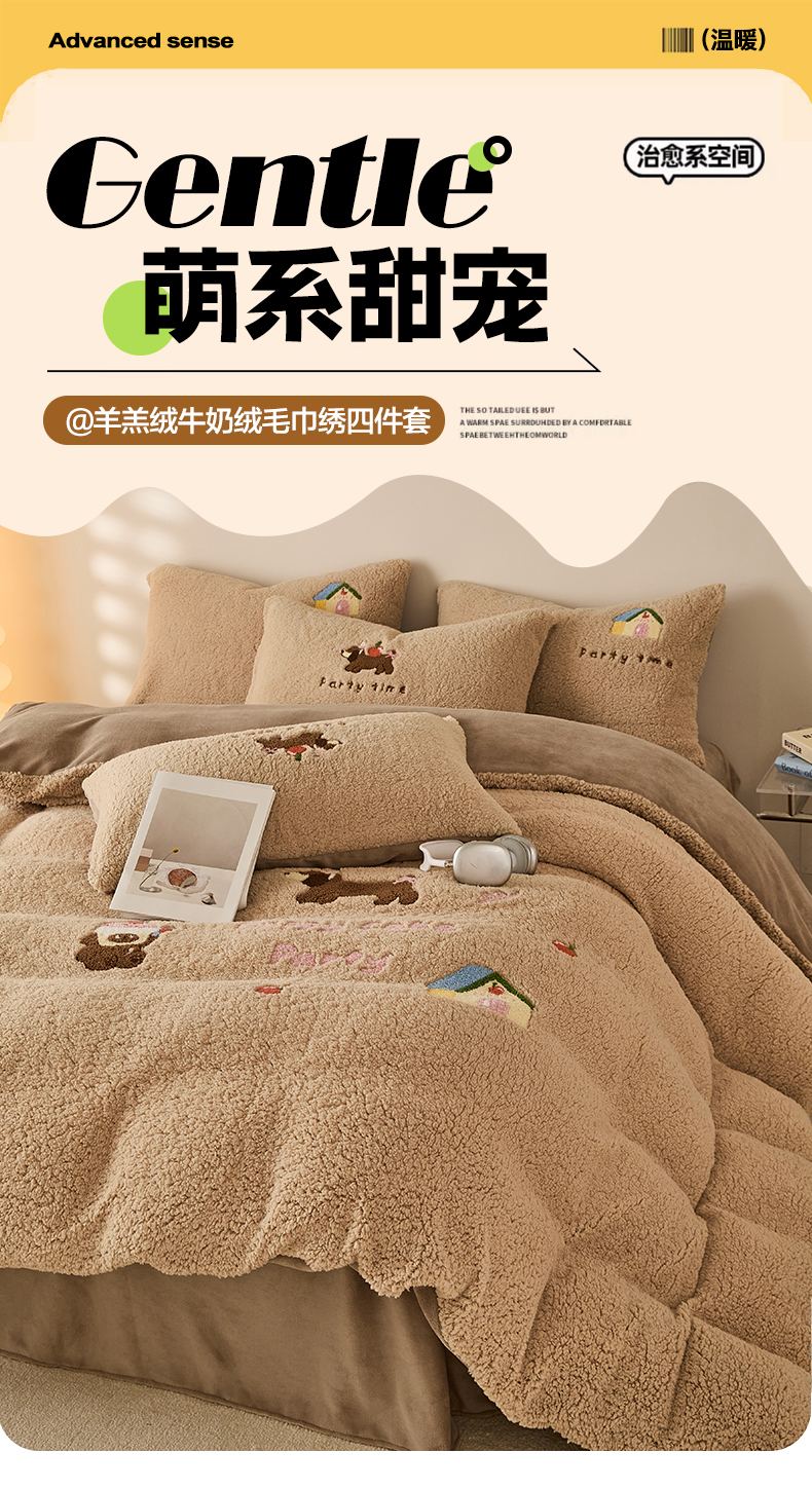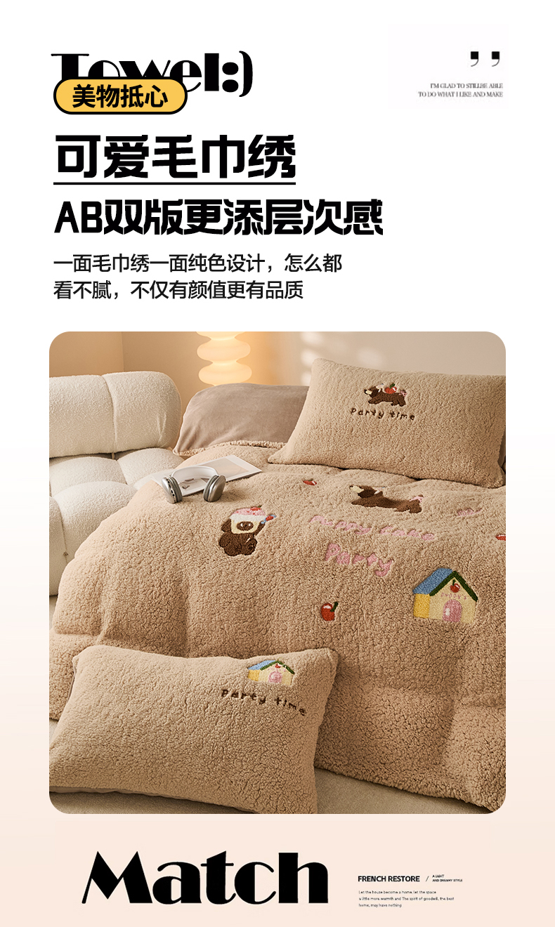 (总)曼町家居 2025新款羊羔绒牛奶绒毛巾绣四件套