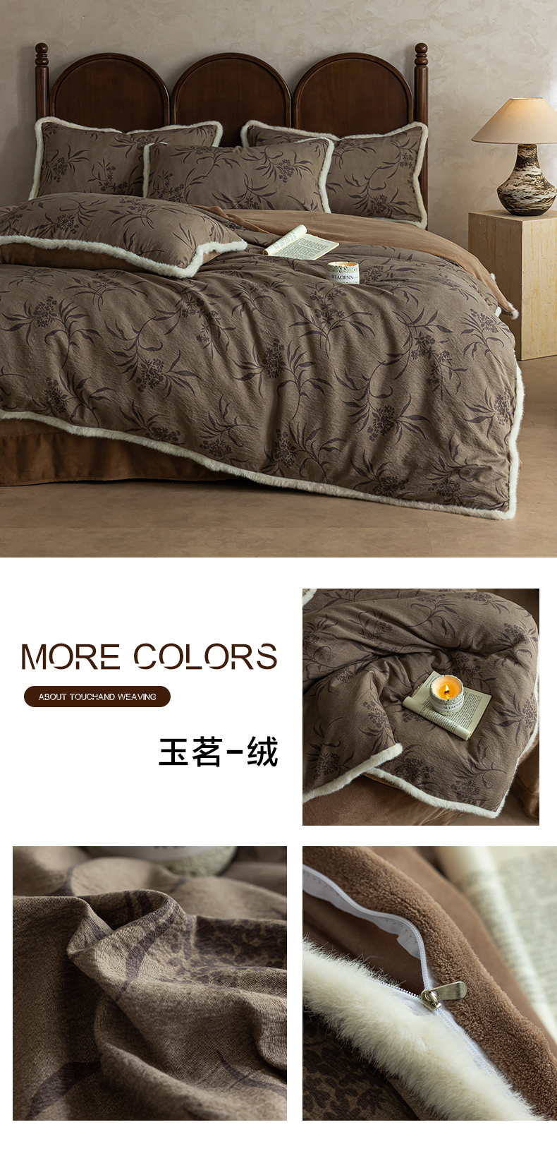 商品名称:迷尚家居 2025新款复古色织棉麻牛奶绒棉加绒四件套 玉茗-绒