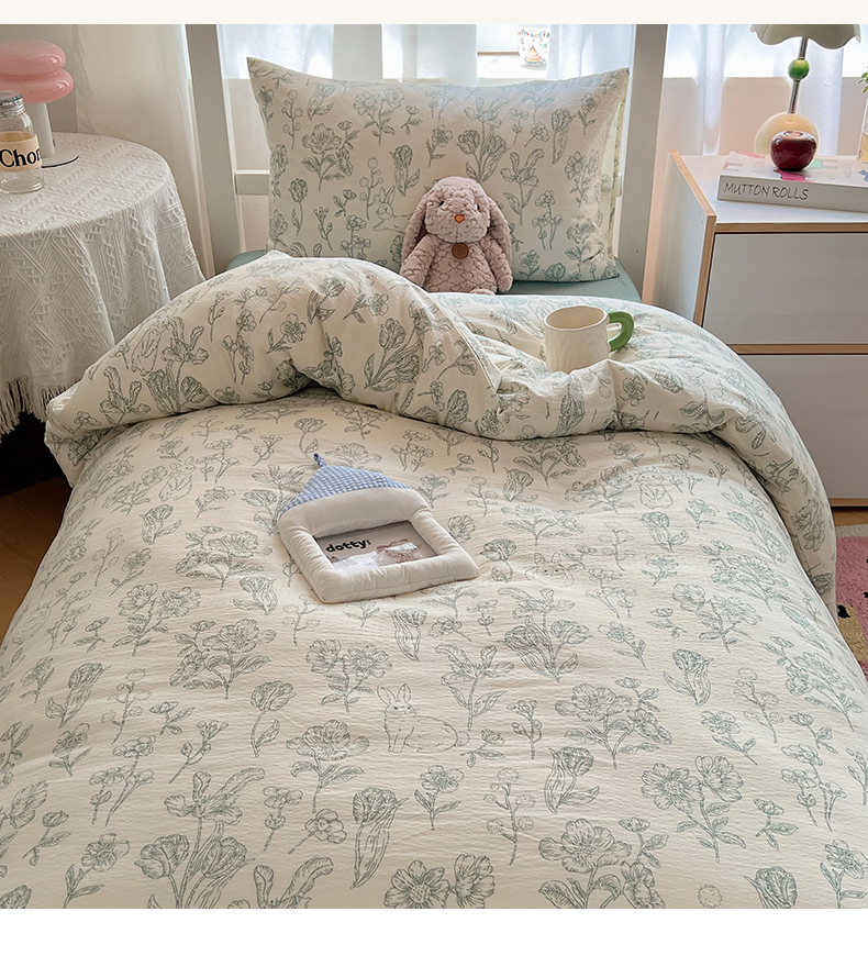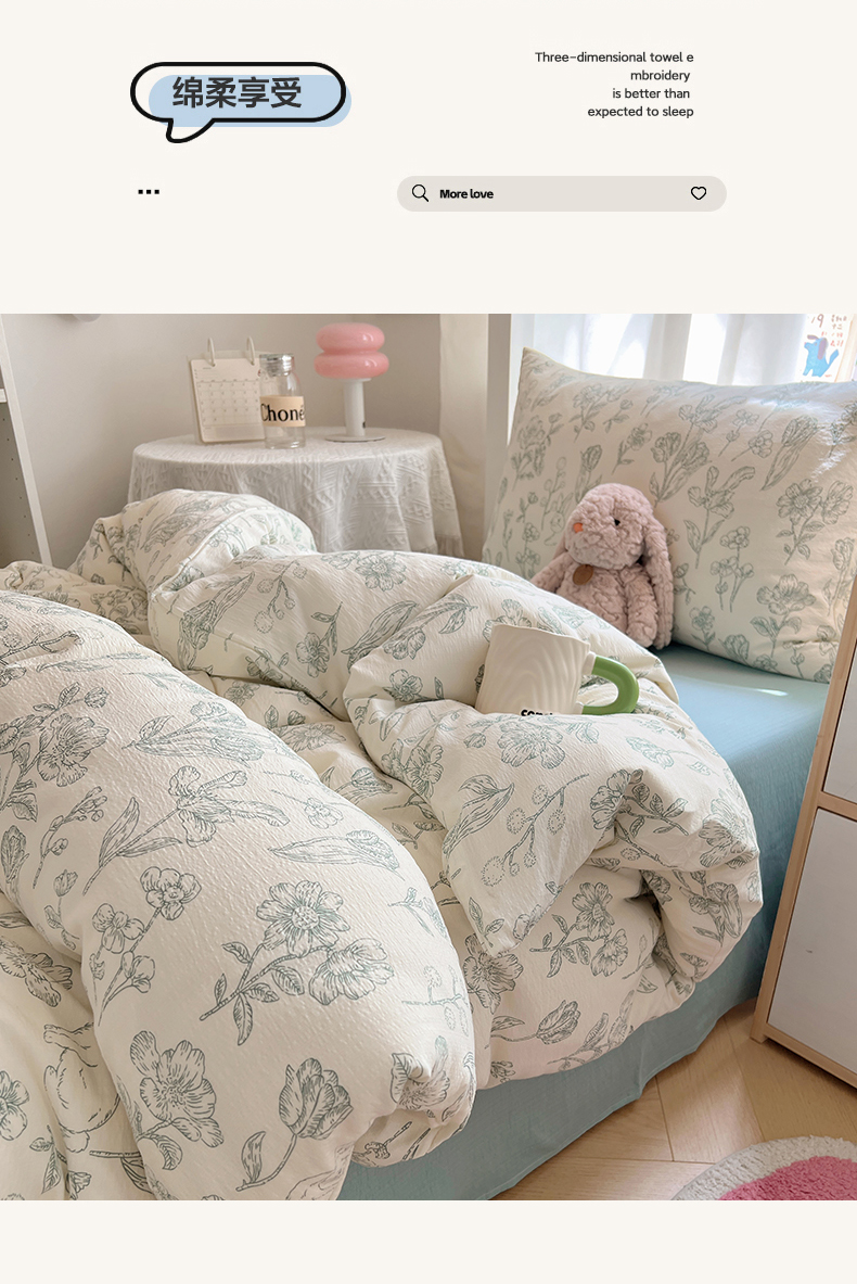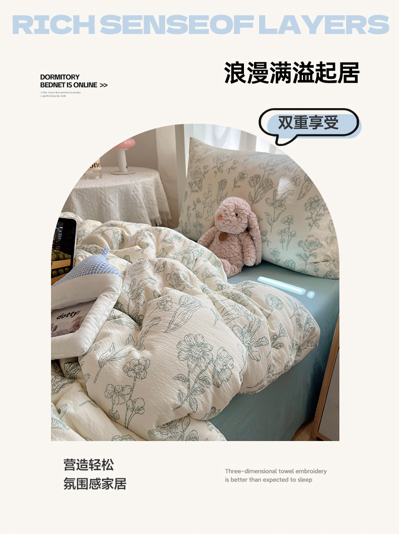 当前位置: 91家纺网 > 商品网购 > 床品套件 > 四件套 > 双层纱四件套 > 韩巢家纺 2025新款双层纱学生季床铺单件被套宿舍寝室上下铺三件套 海像森林
