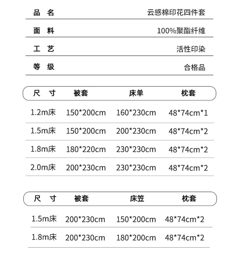 【床笠款】1.8四件套-被套200x230 | ¥58.00 |