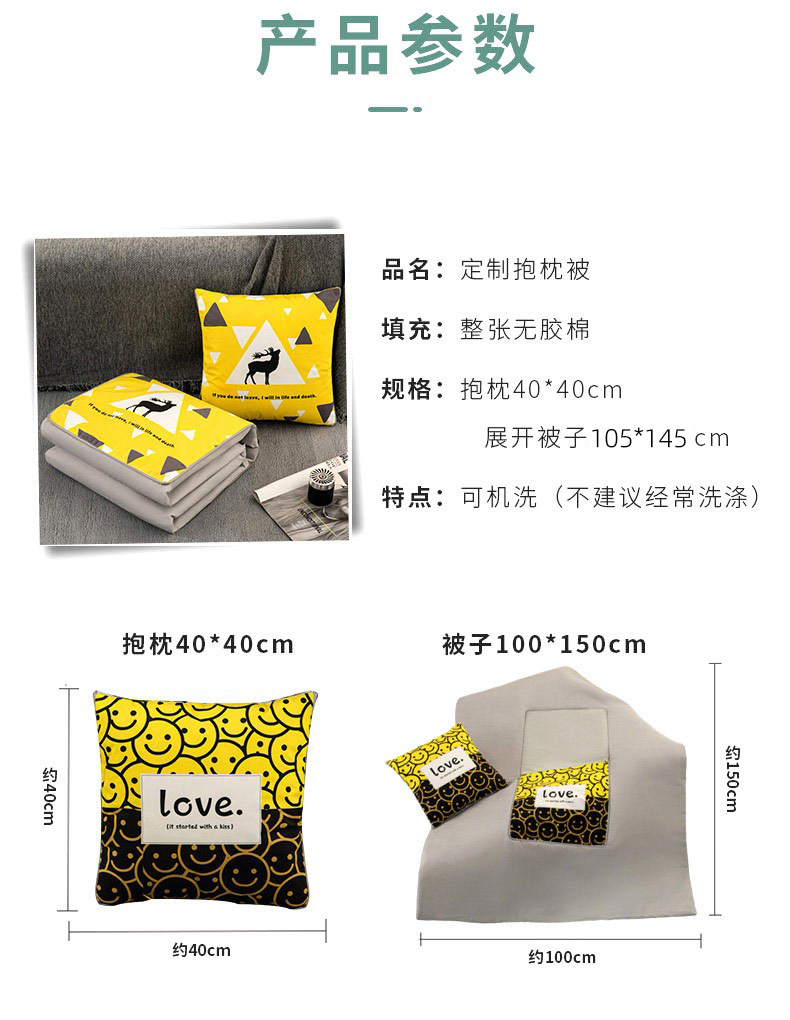 商品名称:新奇异 2025新款北欧风仿超柔抱枕 (支持定制)被 笑脸LOVE