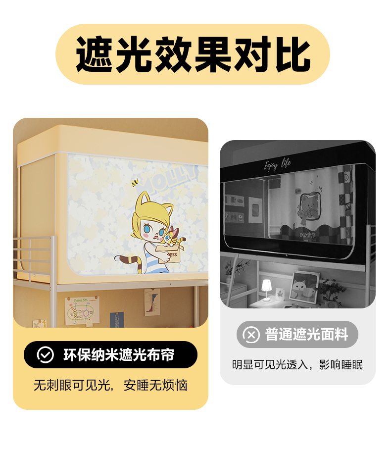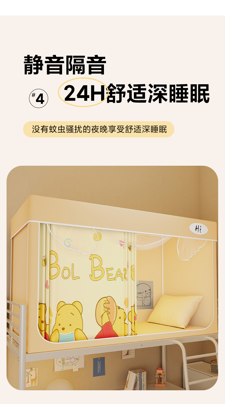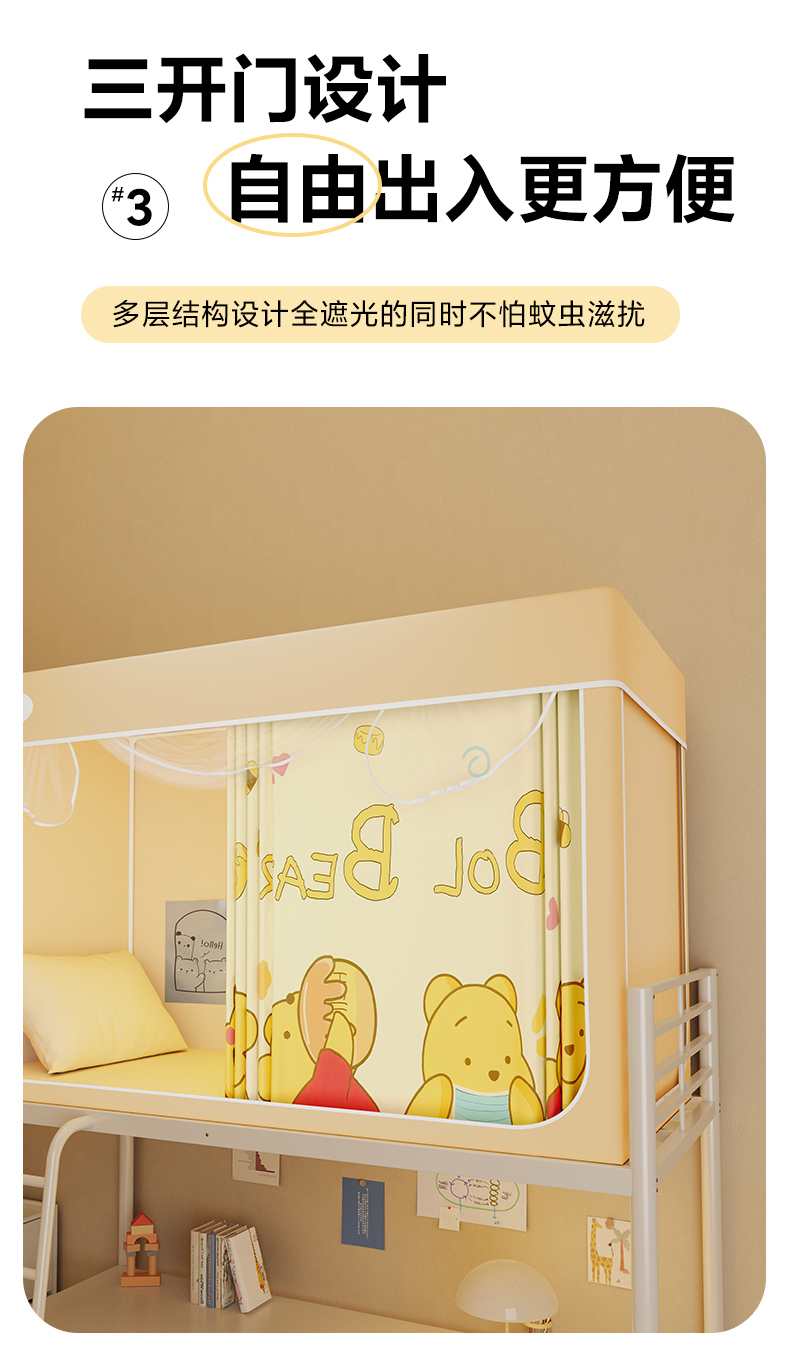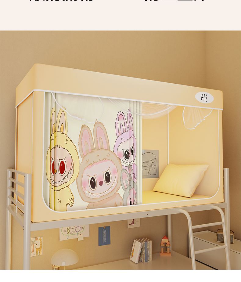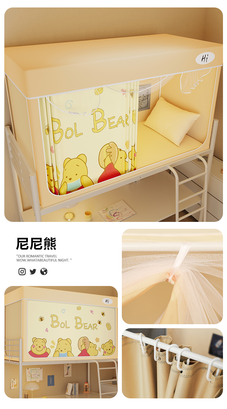 (总)安金蚊帐2025新款防蚊遮光一体99%强遮光学生宿舍上下铺遮光学生蚊帐-黄色系列,好学布布,团布布,星泡泡,贪吃猫,野餐猫,好拍档,好学卡卡,小花熊,尼尼熊,小猫莉