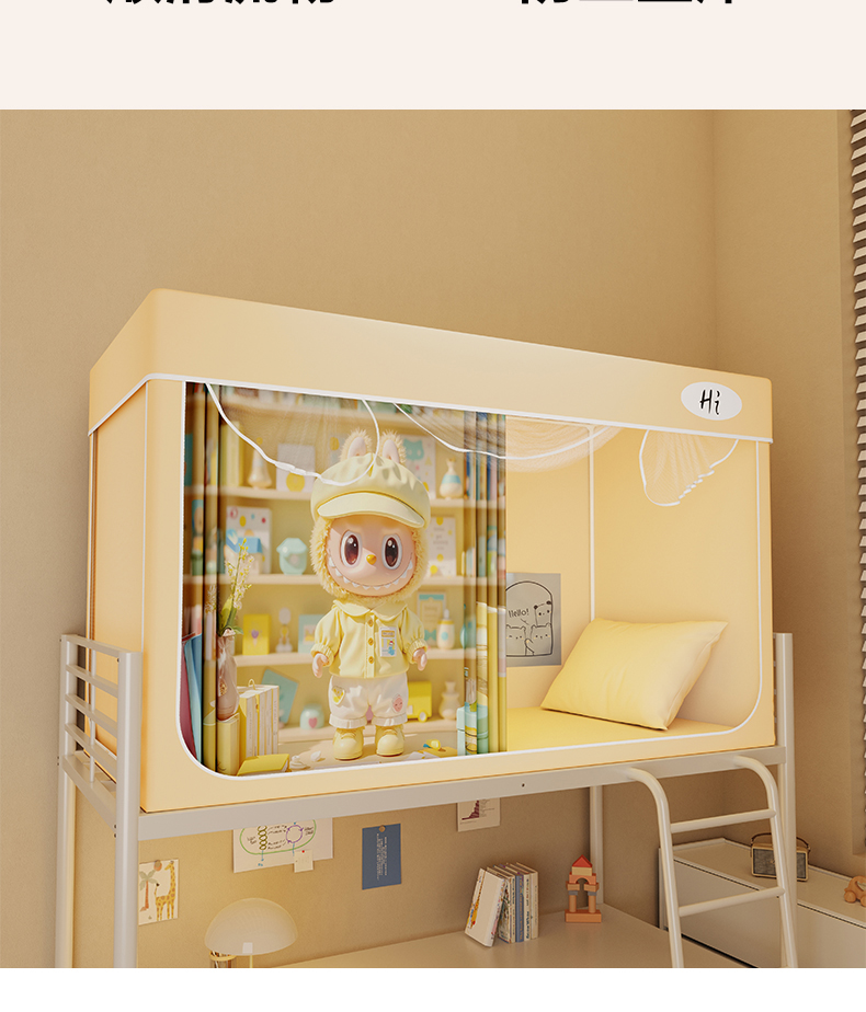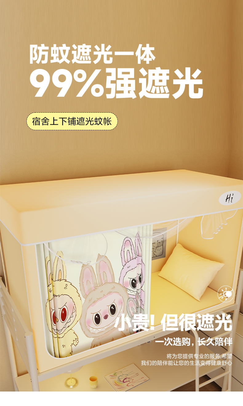 商品名称:(总)安金蚊帐2025新款防蚊遮光一体99%强遮光学生宿舍上下铺遮光学生蚊帐-黄色系列