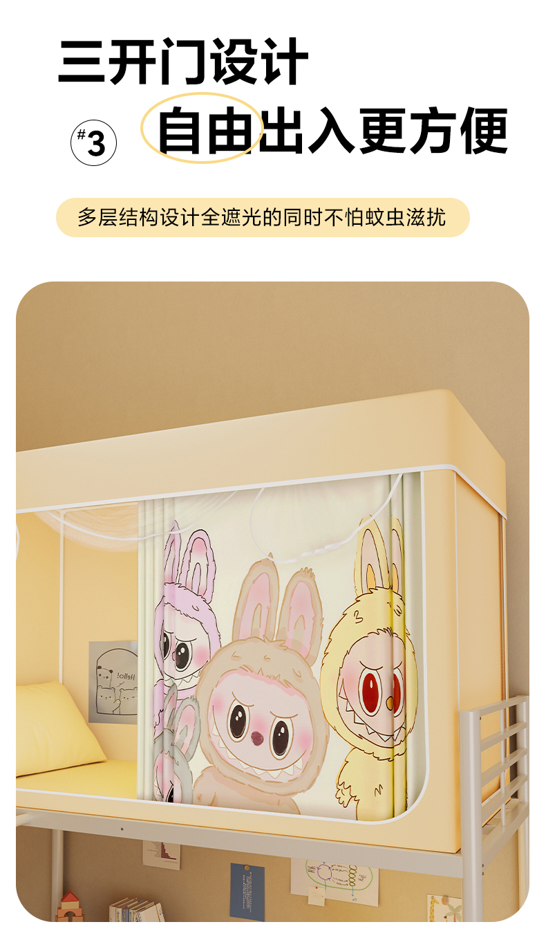 (总)安金蚊帐2025新款防蚊遮光一体99%强遮光学生宿舍上下铺遮光学生蚊帐-灰色系列,多彩布布,搞怪小新,奇奇一家,探险布布,窜窜鼠,拍拍熊