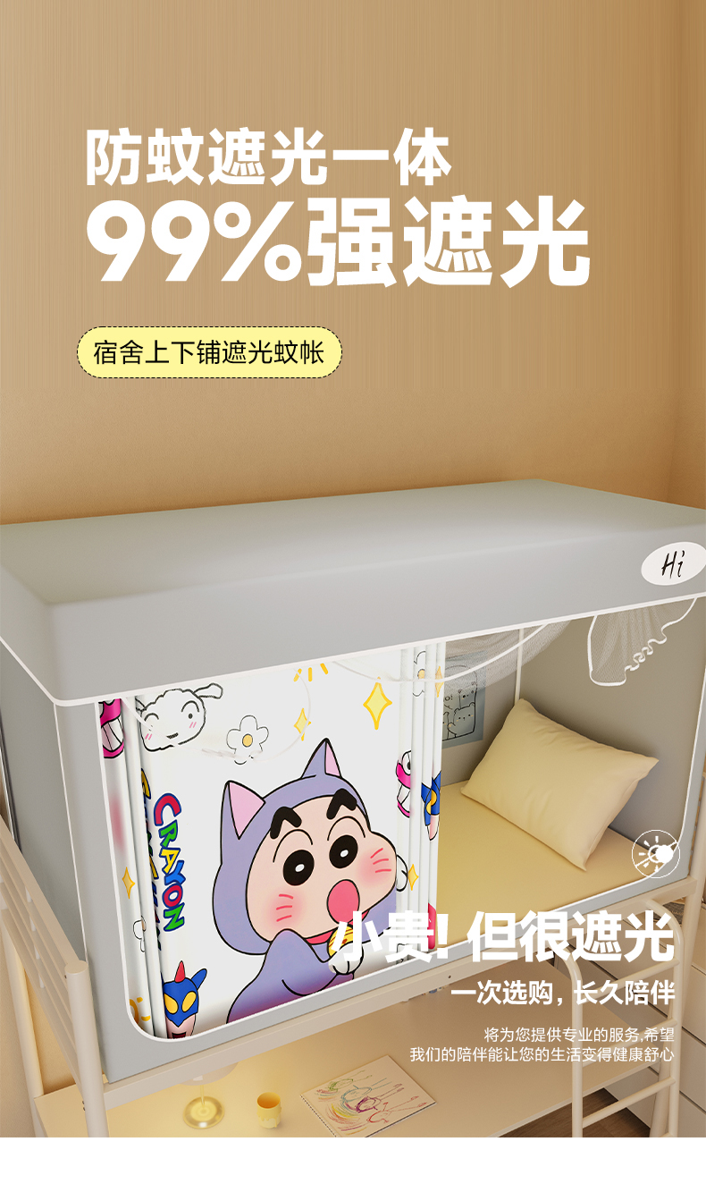 当前位置: 91家纺网 > 商品网购 > 床上用品 > 蚊帐 > 学生蚊帐 > 安金蚊帐2025新款防蚊遮光一体99%强遮光学生宿舍上下铺遮光学生蚊帐-灰色系列 搞怪小新