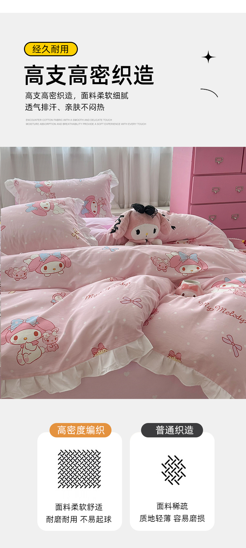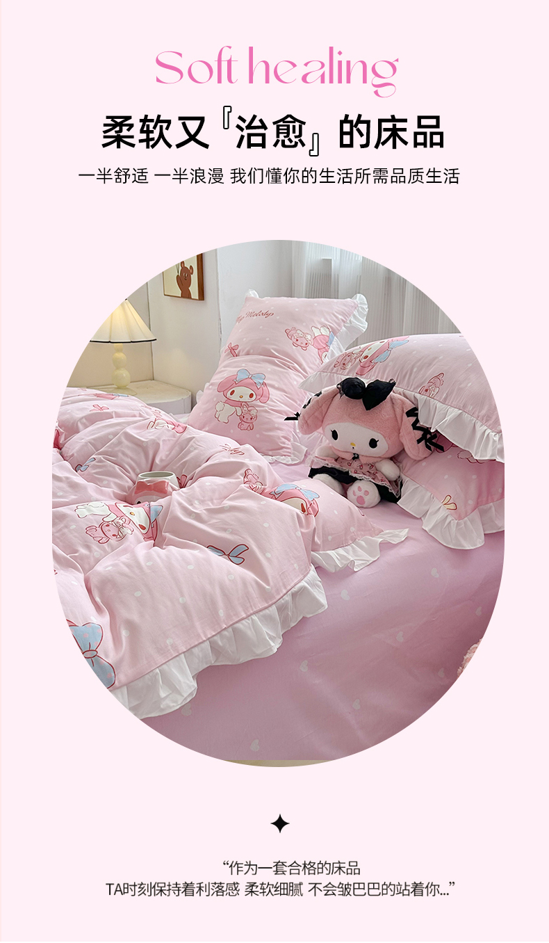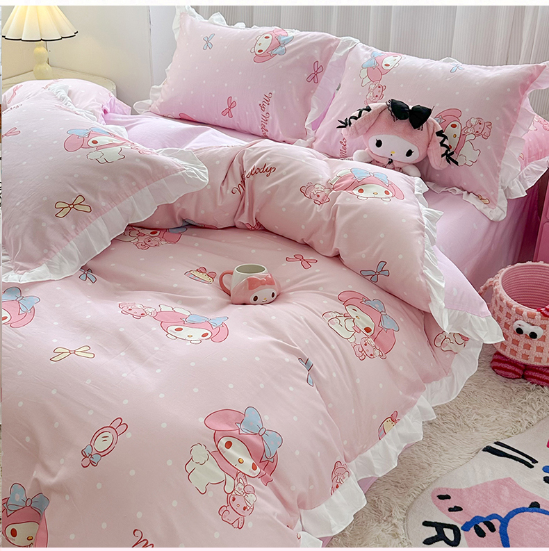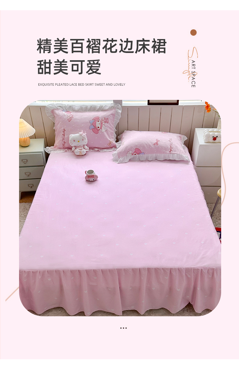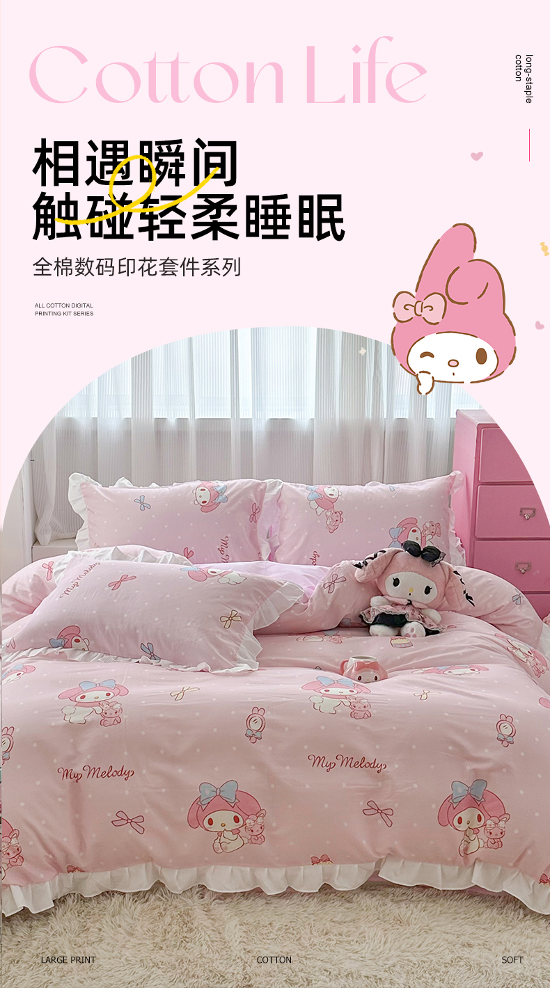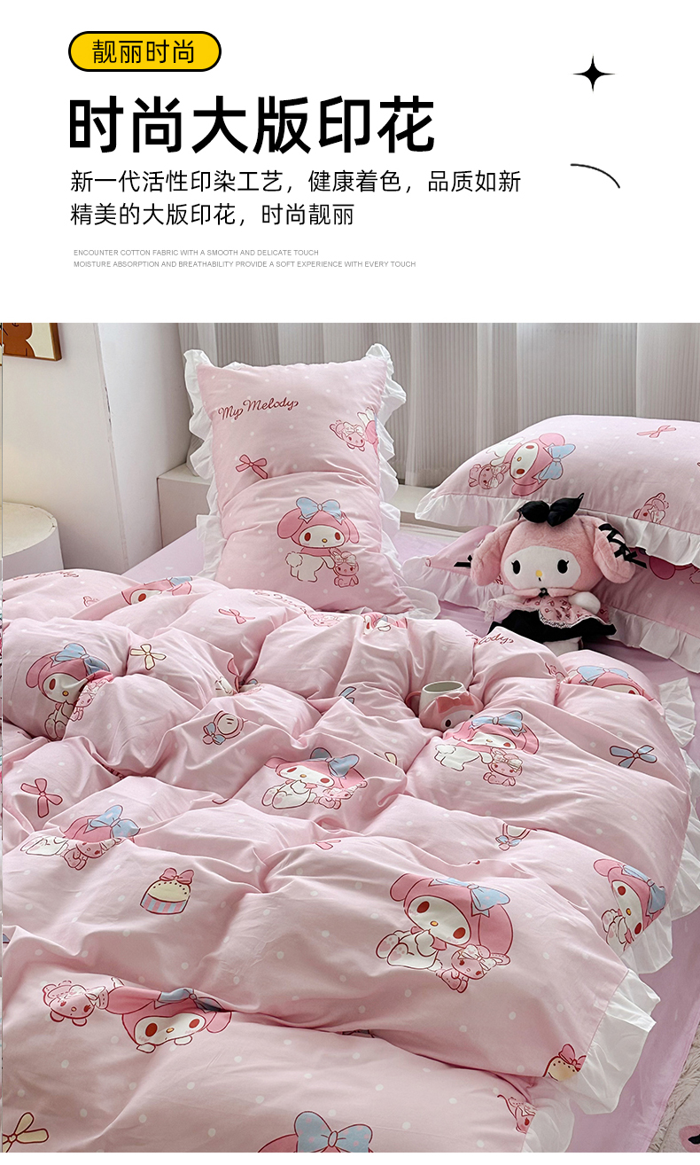 当前位置: 91家纺网 > 商品网购 > 床品套件 > 四件套 > 全棉普通四件套 > 玉元坊2025新款三丽鸥系列 全棉床单纯棉床裙三四件套 魔法美乐蒂-白花边款
