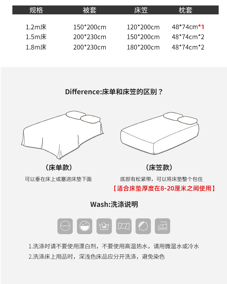 1.8m床 四件套 床笠款式【被套200*230cm,床笠180*200cm,枕套48*74cm2个】 | ¥145.00 |
