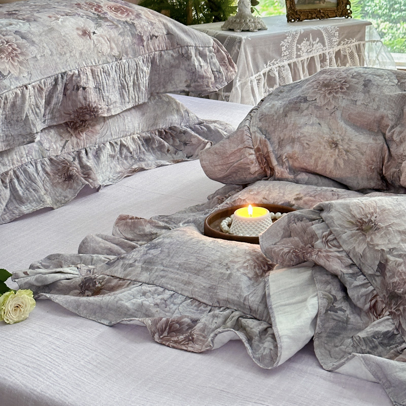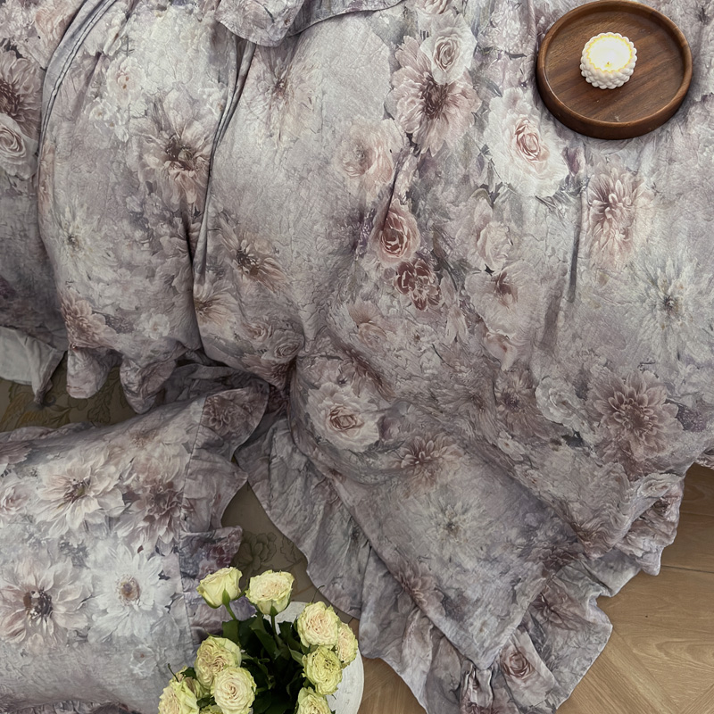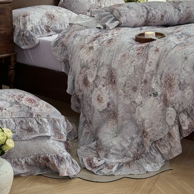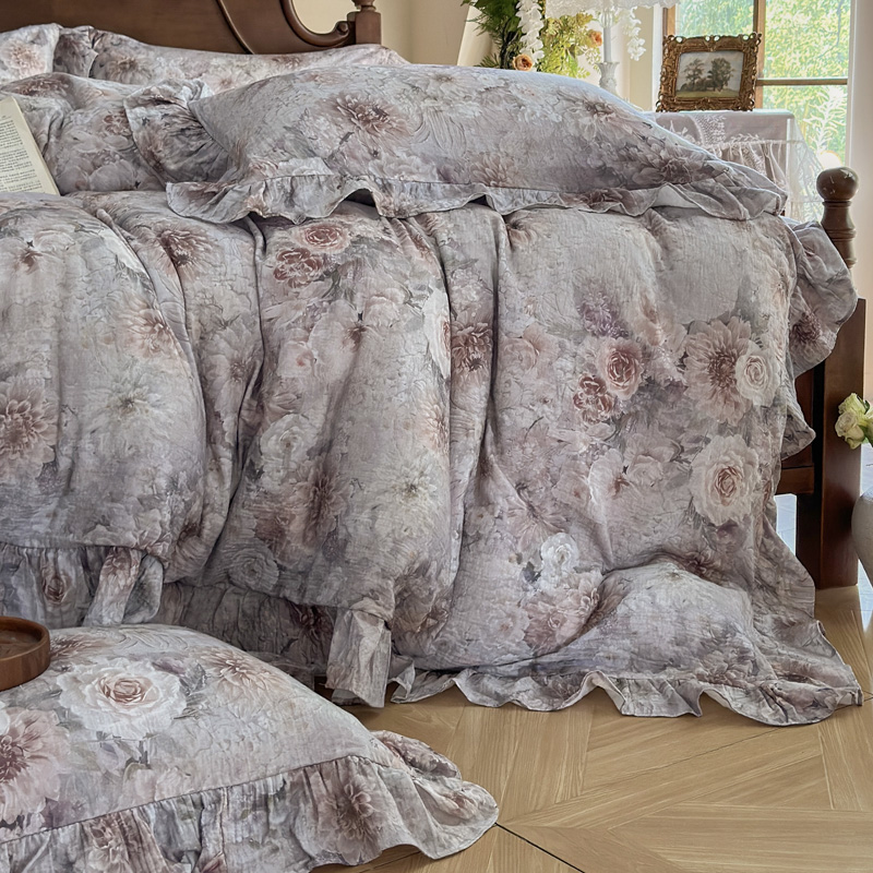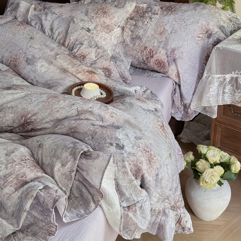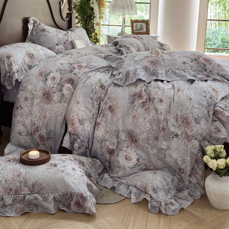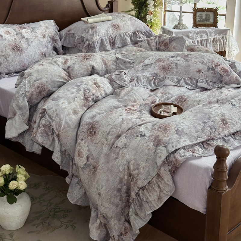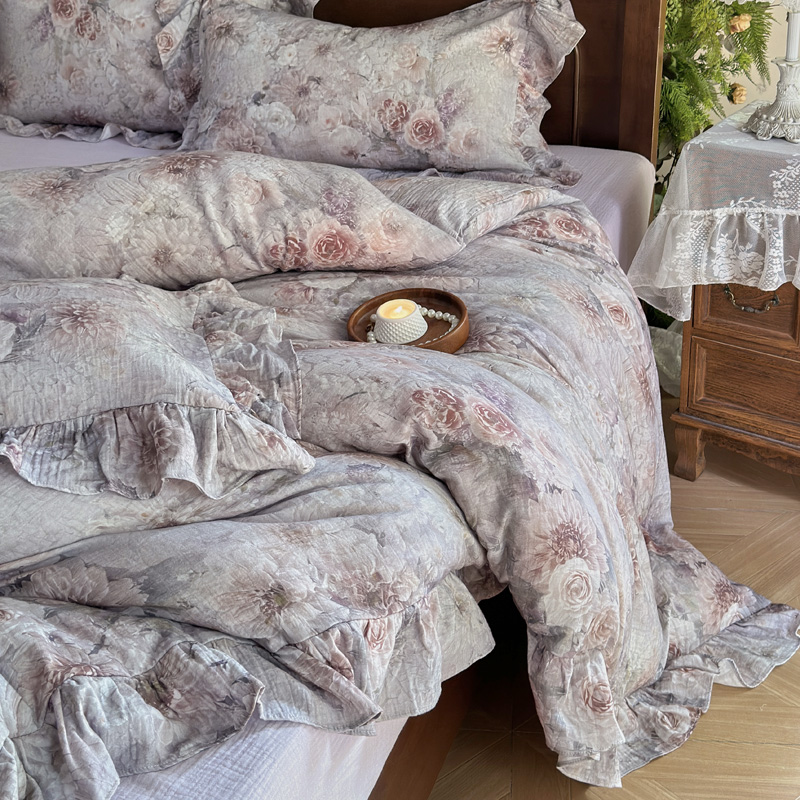 木楌家居2025新款法式油画风全棉双层皱皱纱四件套 山谷幽