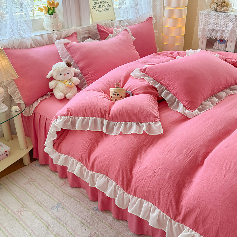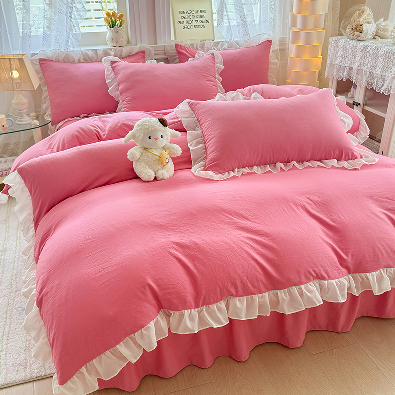 (总)博弈家纺 2025新款小清新温柔公主风加厚水洗棉床裙床上四件套