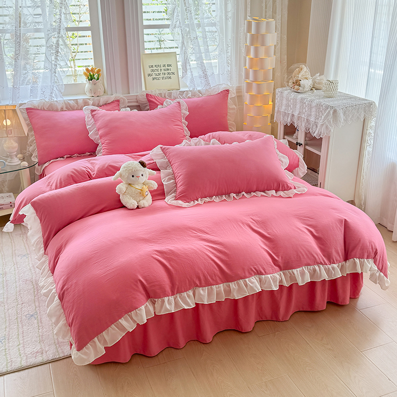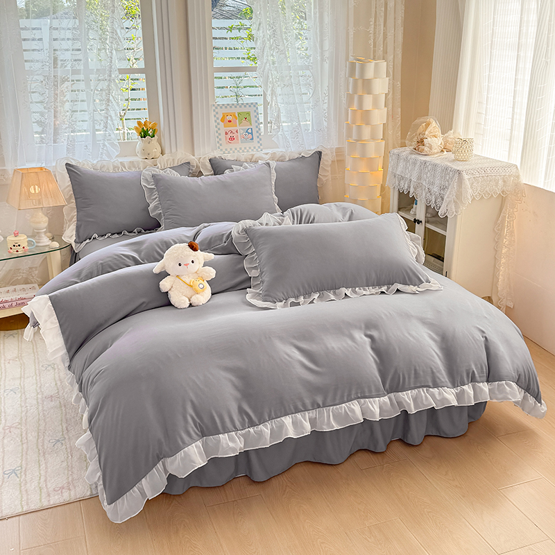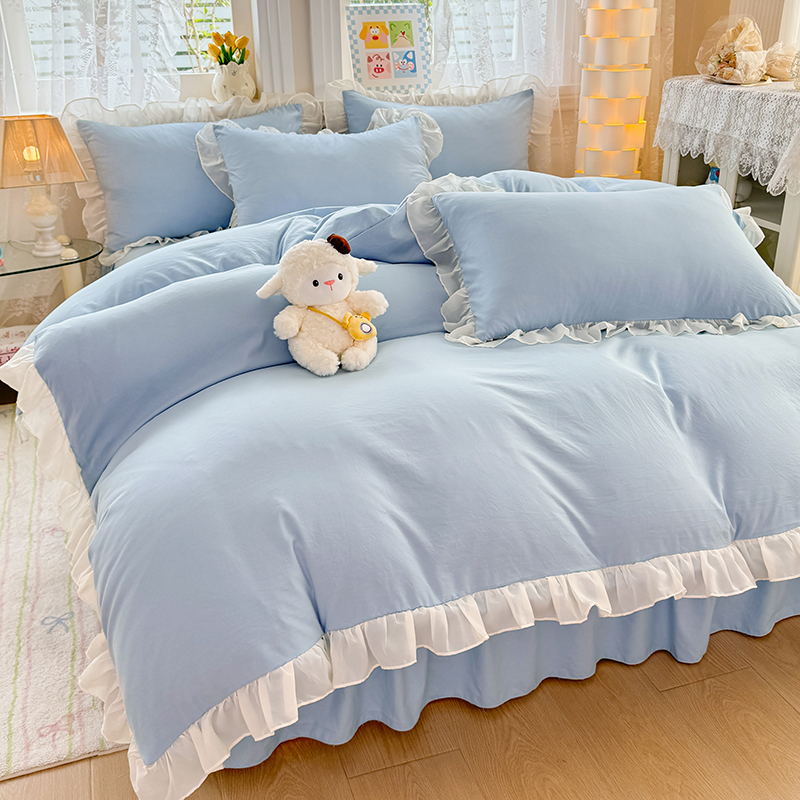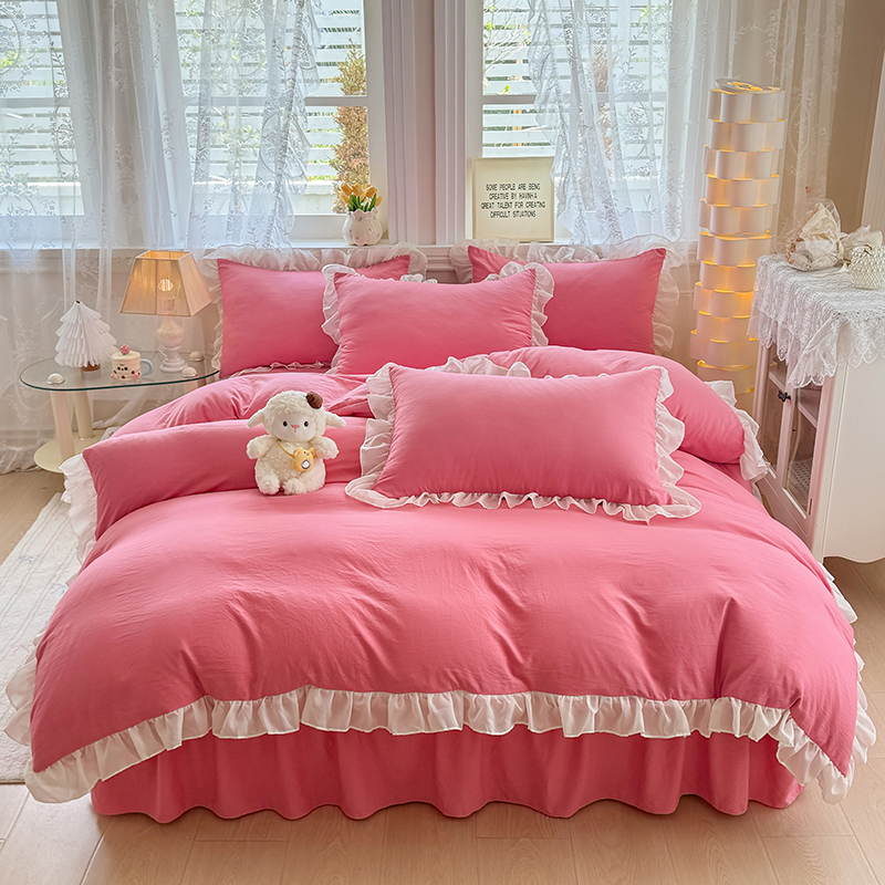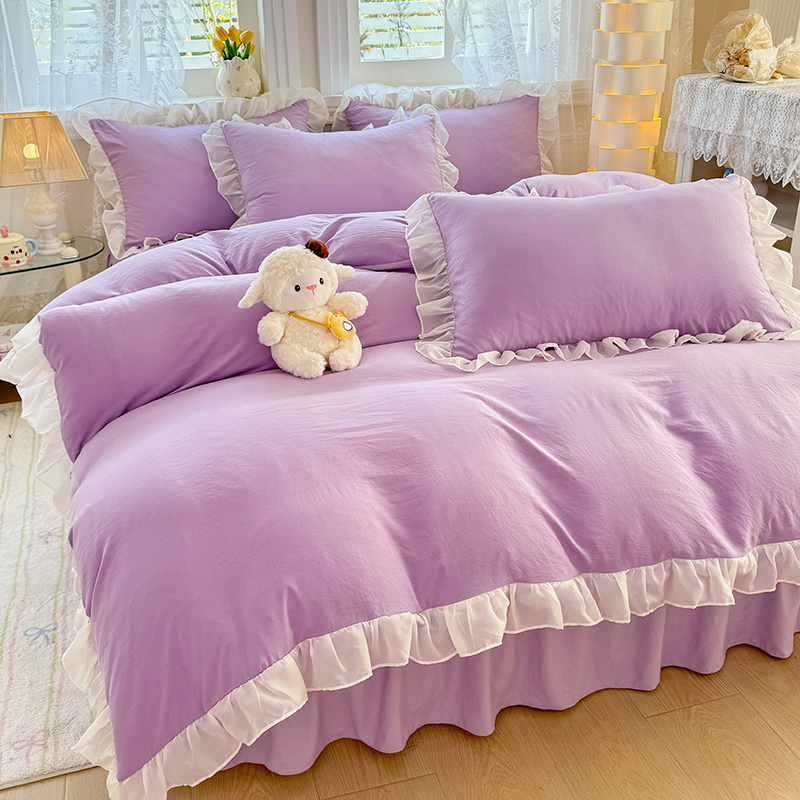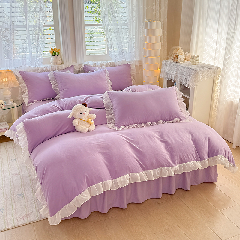 (总)博弈家纺 2025新款小清新温柔公主风加厚水洗棉床裙床上四件套,花边纯色—豆沙,花边纯色—果绿,花边纯色—奶粉,花边纯色—奶灰,花边纯色—奶蓝,花边纯色—葡萄紫