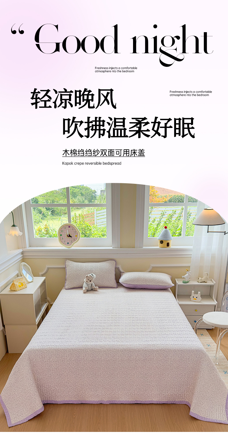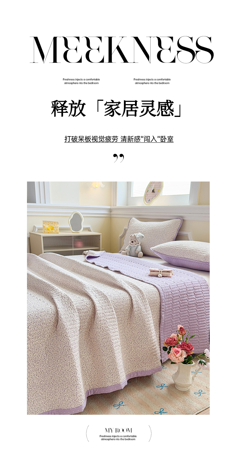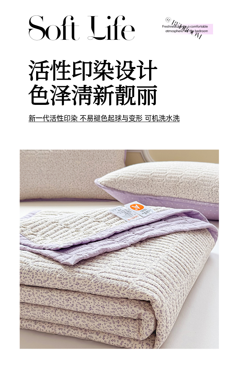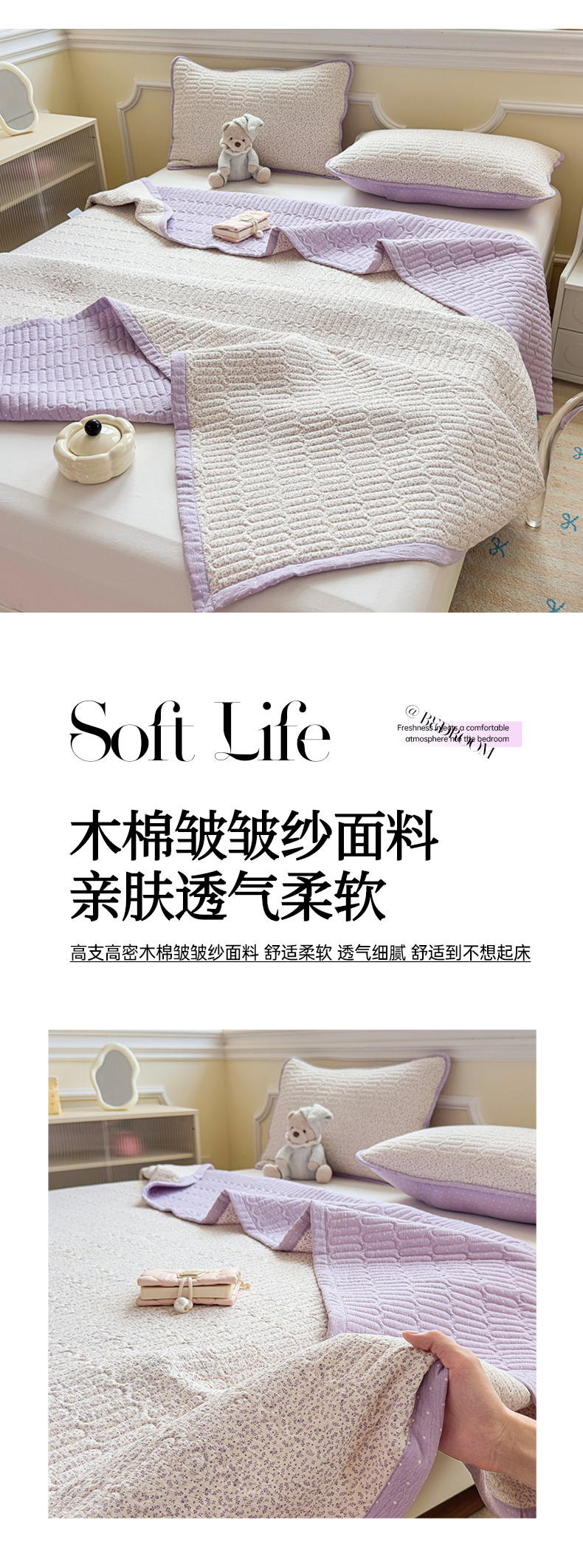 商品名称:芯元素 2025新款木棉绉绉纱双面可用床盖 梦境-紫