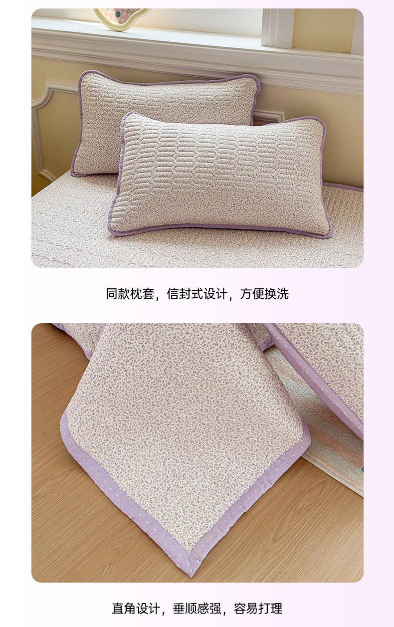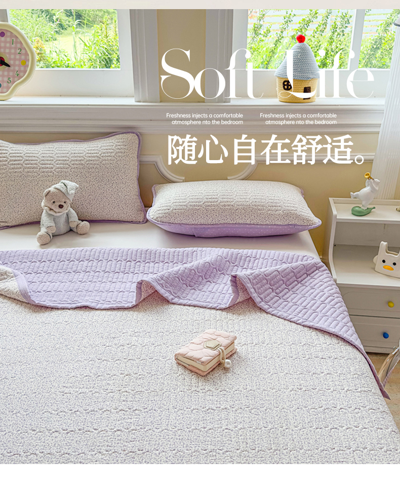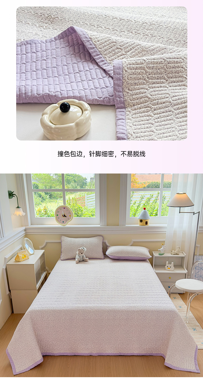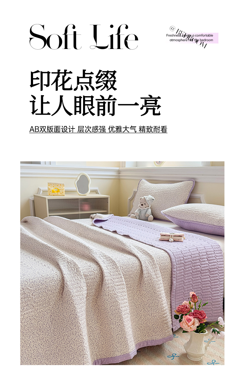 商品名称:芯元素 2025新款木棉绉绉纱双面可用床盖 梦境-紫
