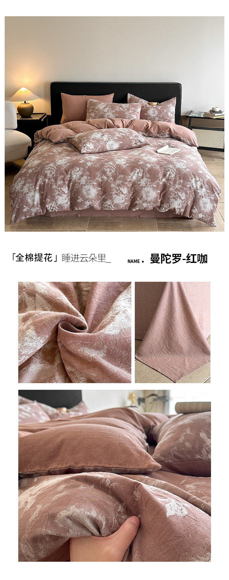 当前位置: 91家纺网 > 商品网购 > 床品套件 > 四件套 > 全棉普通四件套 > ab家纺 2025新款全棉纯棉提花四件套-款式一 曼陀罗-红咖