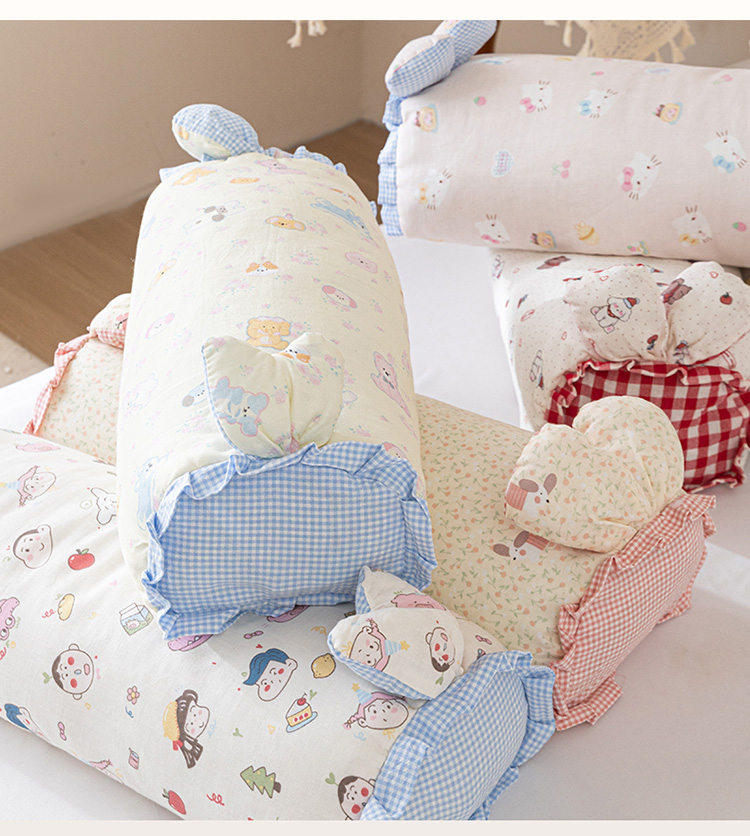 商品名称:卓昌枕芯 2025新款全棉双层纱兔耳枕糖果荞麦枕头枕芯 繁花粉格