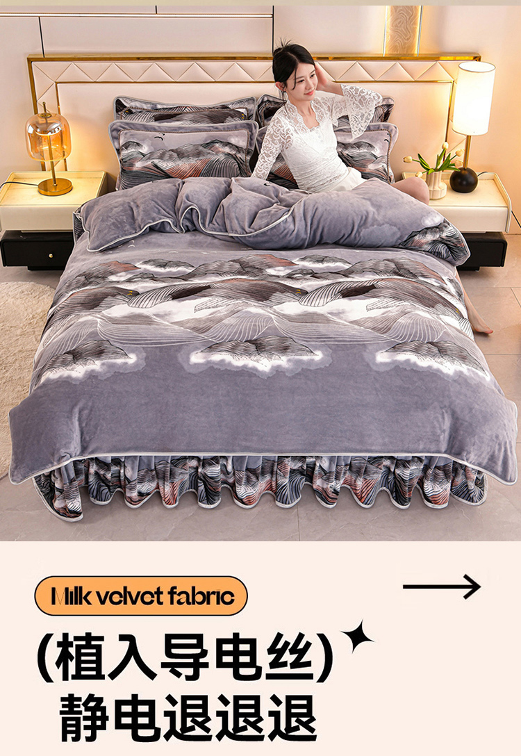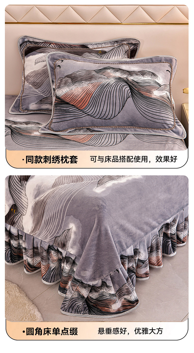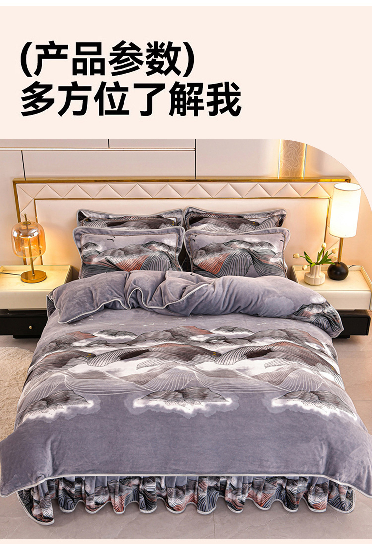 商品名称:硕喜 2025新款新8.5斤法莱绒四件套珊瑚牛奶金貂绒四件套床裙款 锦绣河山